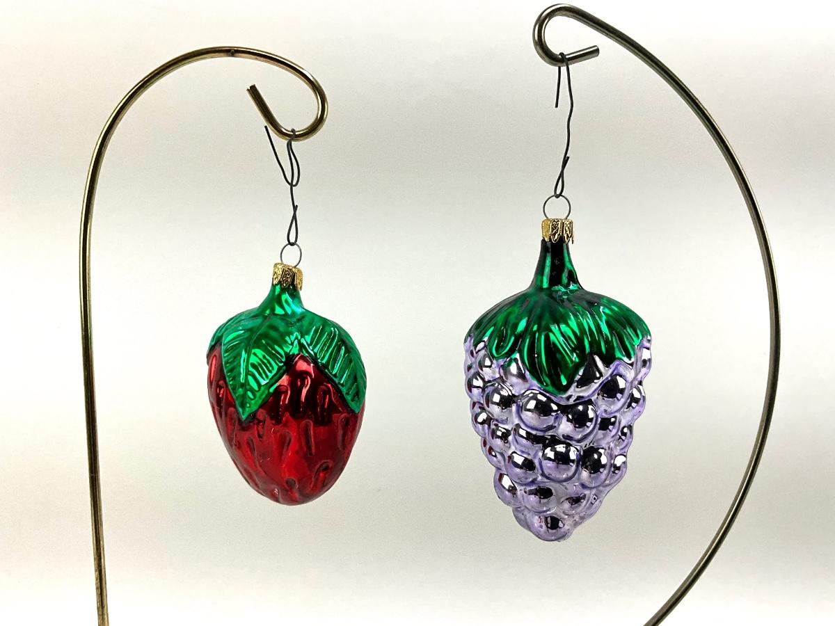 644 Handblown Glass Strawberry and Grapes Ornaments