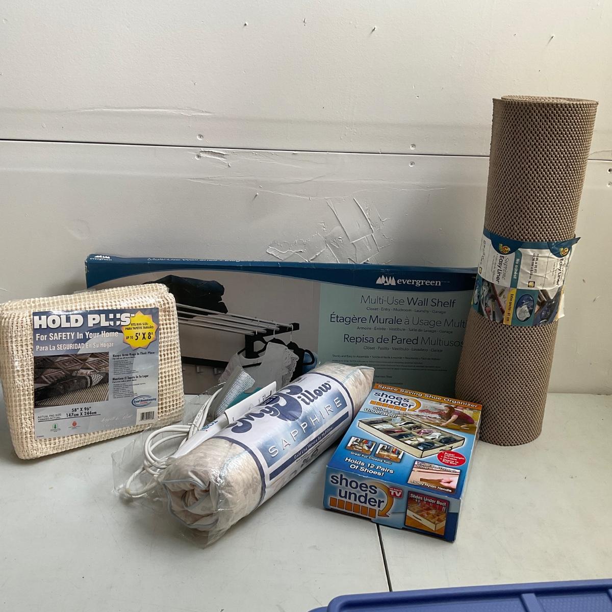 645 New In Package Wall Shelf, Pillow, Shelf Liner, Rug Mat