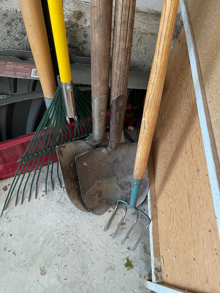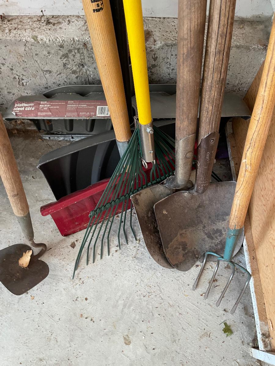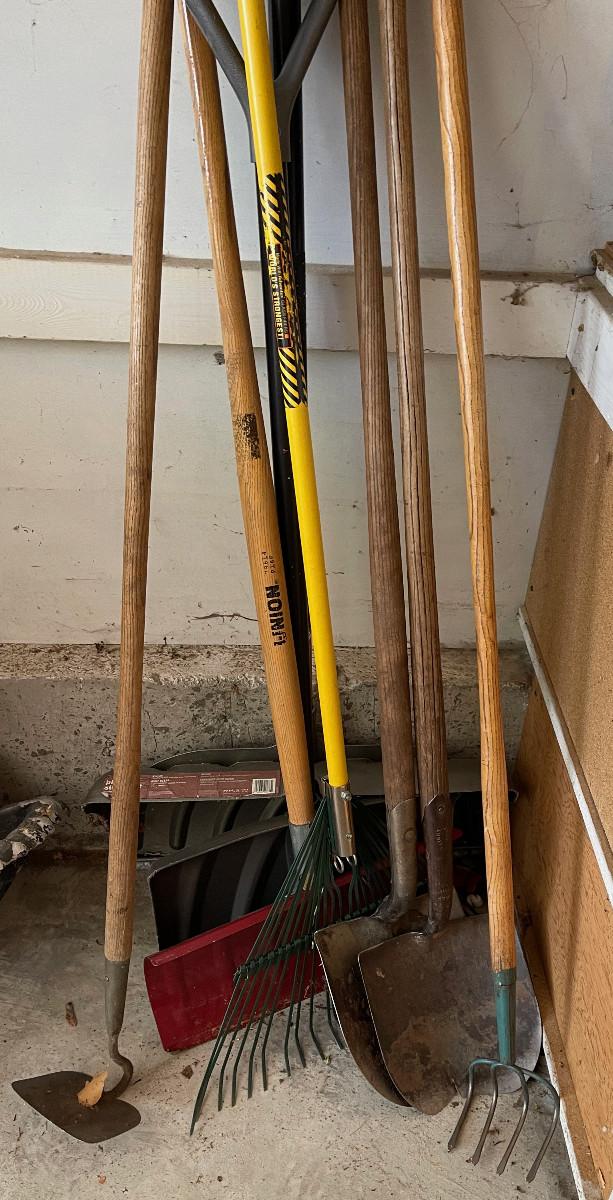 #646 G Yard Tools Lots! Racks, Shovels Hoes Etc.