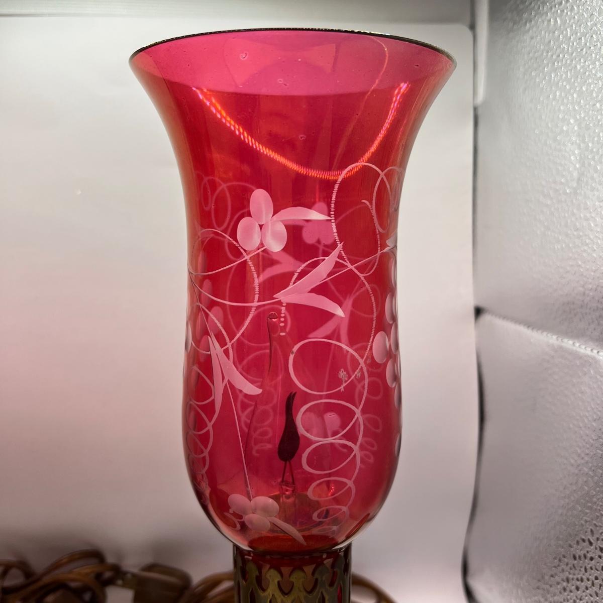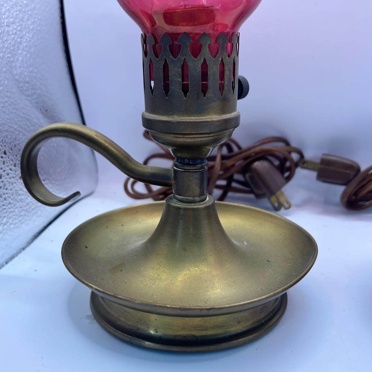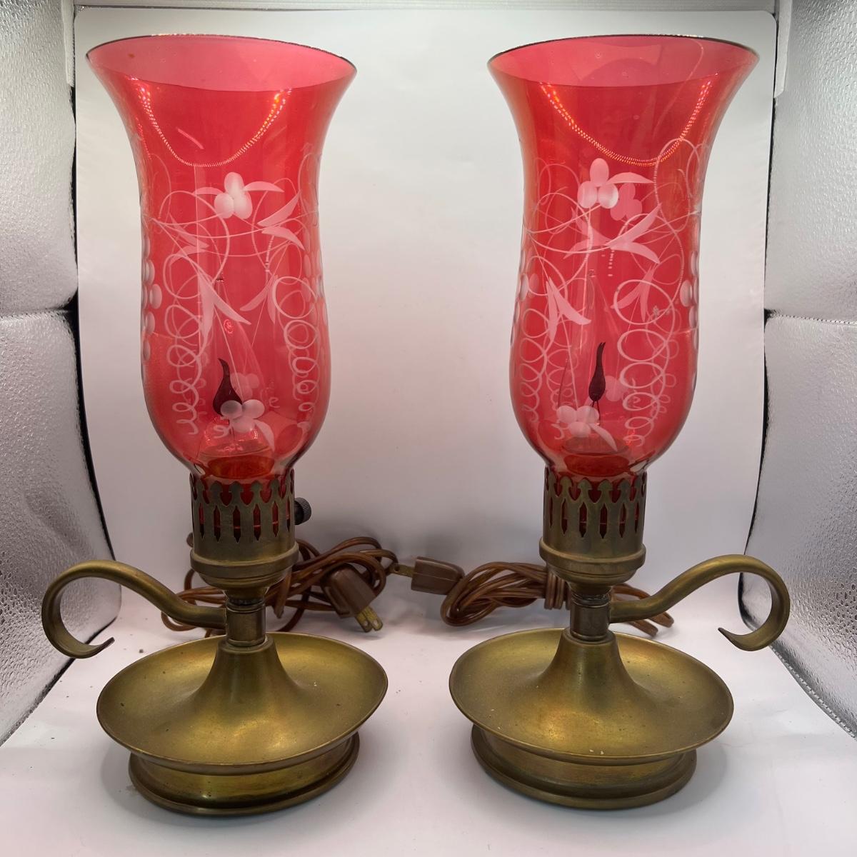 Antique Art Deco Cranberry Lamps Brass Bottom