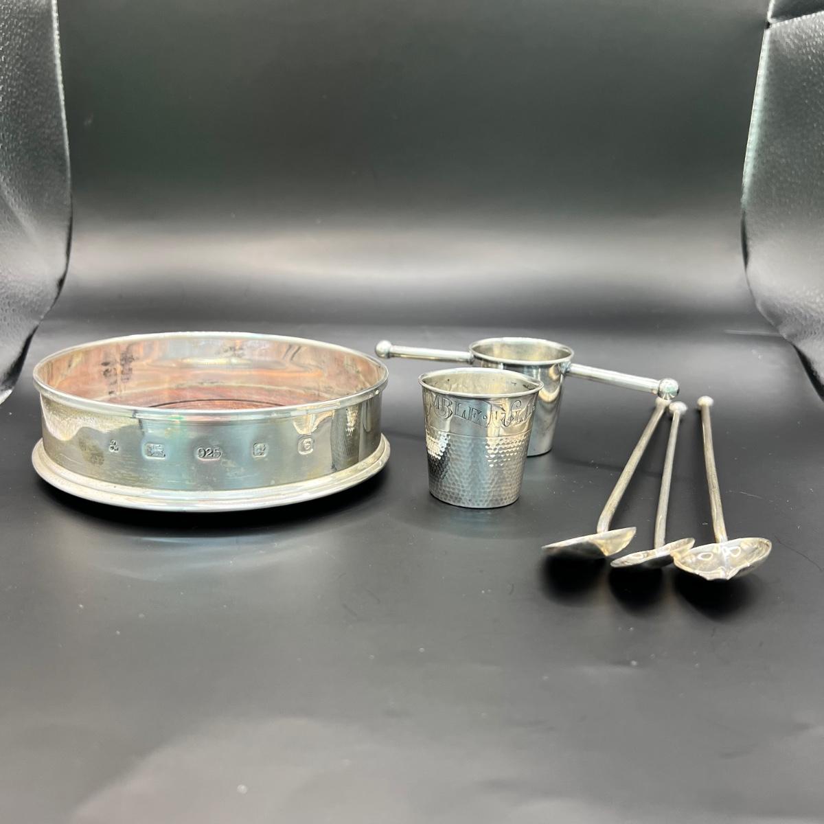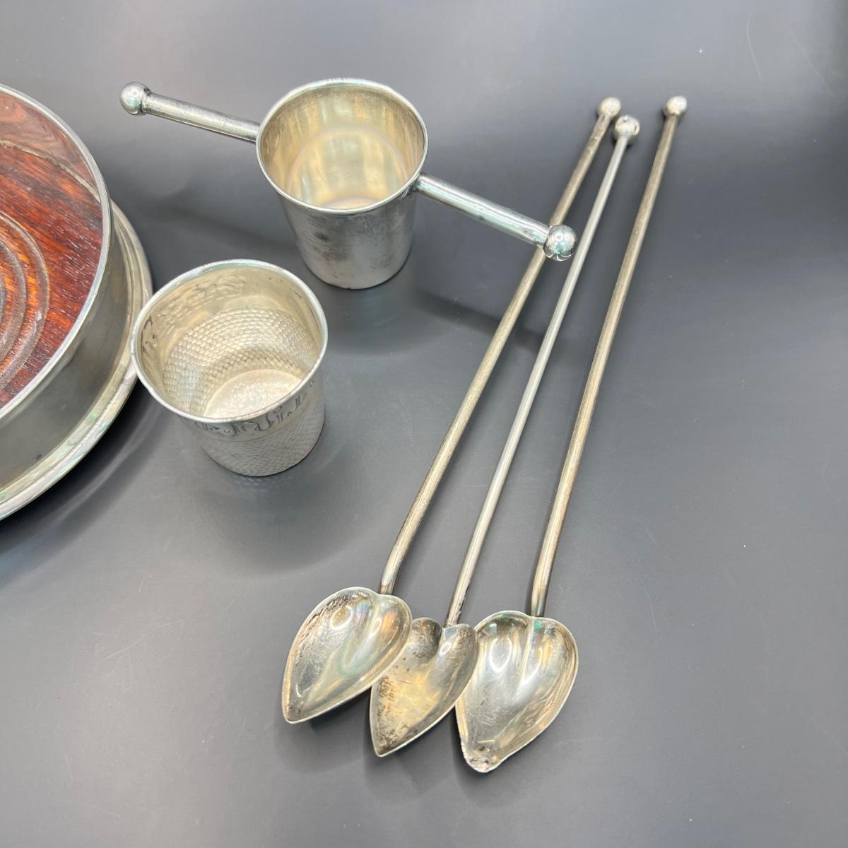 Sterling Wine Coaster/Sterling Heart Straw Spoons/Two Sterling Barware