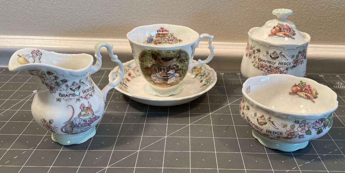#648 BRAMBLY: Jam, Tea Cup, Saucer, Sugar with lid