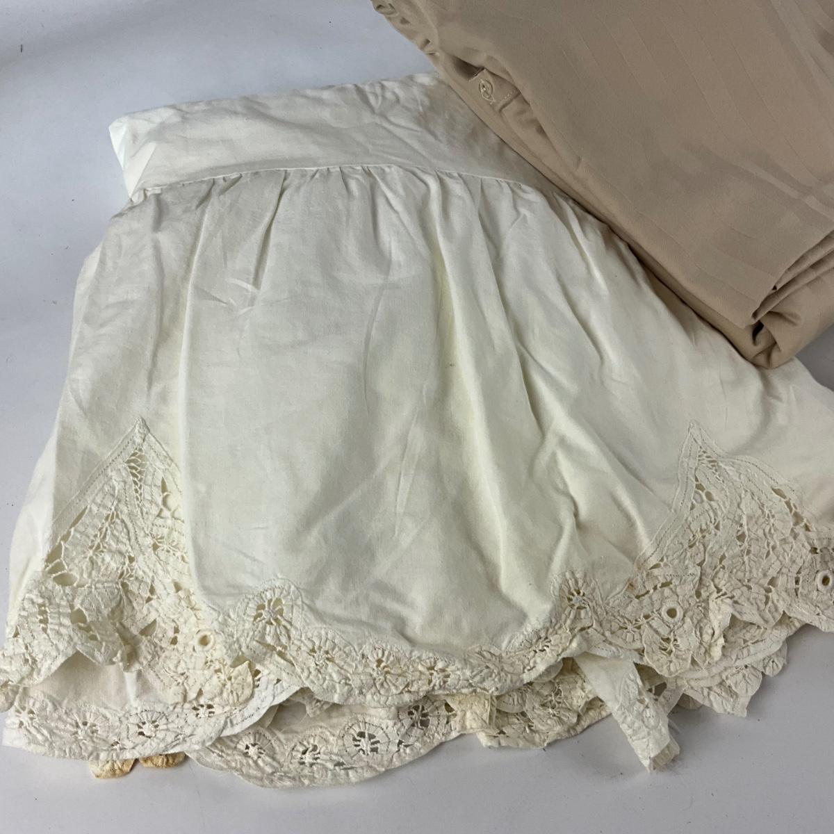 648 Two King Duvet Covers and Battenburg Lace Bed Skirt