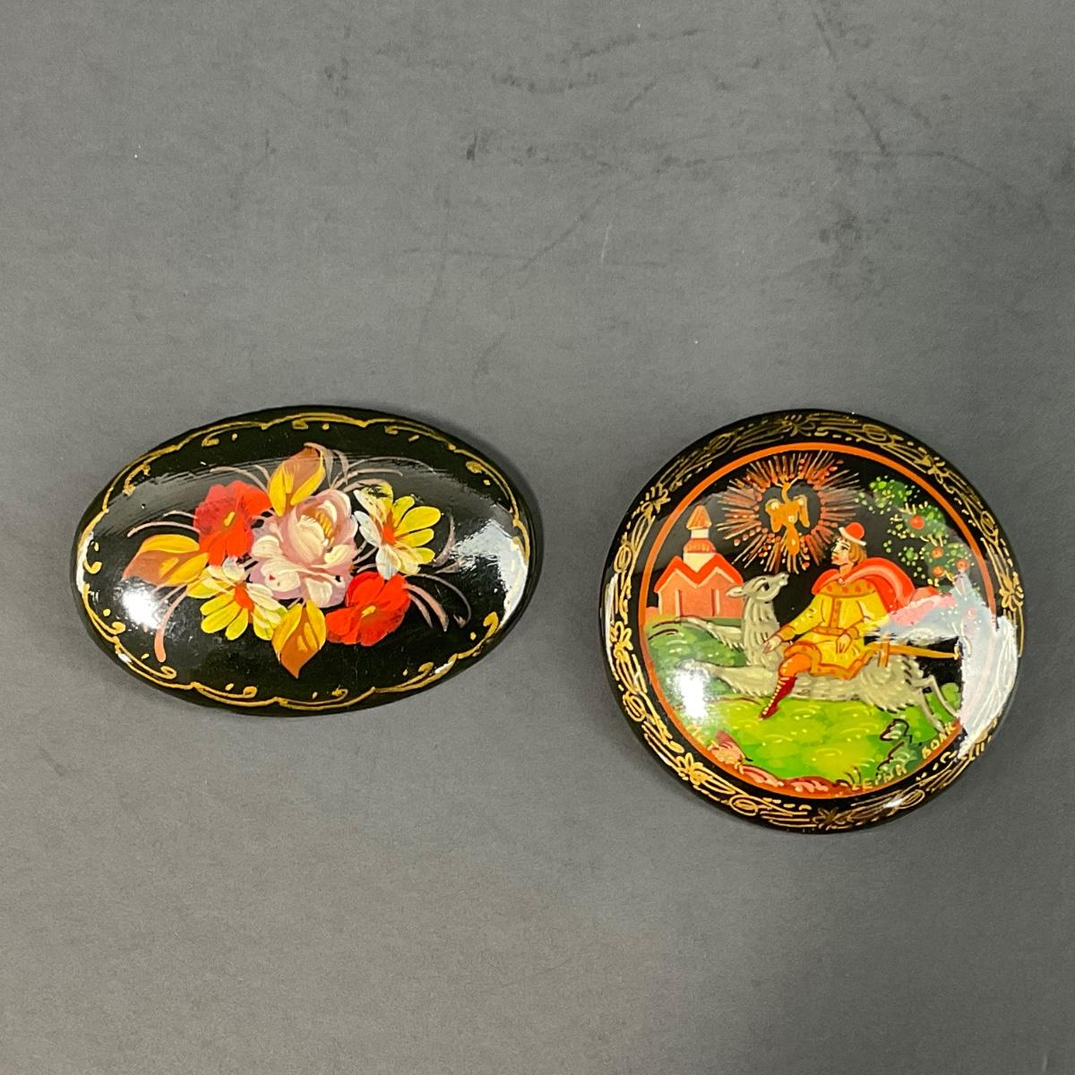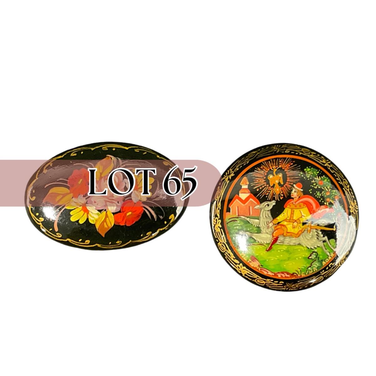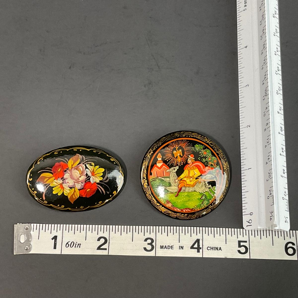 Two vintage Russian brooches. This piece has no damage, and appears to be in great shape with no visable chips, cracks, or broken pieces. Please see photos for details and condition. Any condition statement is given as a courtesy to a client, is an opinion, and should not be treated as a statement of fact. Reference to condition written, oral or within a condition report shall not be regarded as a full account of condition and may not include all defects, alterations, or restorations. Absence of a condition report does not imply a lot is flawless or lacking imperfections or damage. Katherine’s Auction & Appraisal Service shall have no responsibility for any error or omission. Returns shall not be accepted on the basis of condition. ::: Shipping is available on this lot. If you require shipping you must let us know at the close of the auction. We will coordinate with you after the item has been won. Shipping fees will include insurance up to or exceeding the value of all items being mailed. If you have any questions regarding this lot please contact the auctioneer either via this website, by direct email or by phone. PICK UP TIMES and other important information can be found in the TERMS and DESCRIPTION of the auction. Please take a look for pertinent information. Thanks!