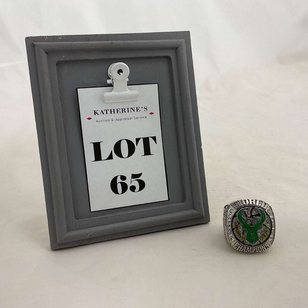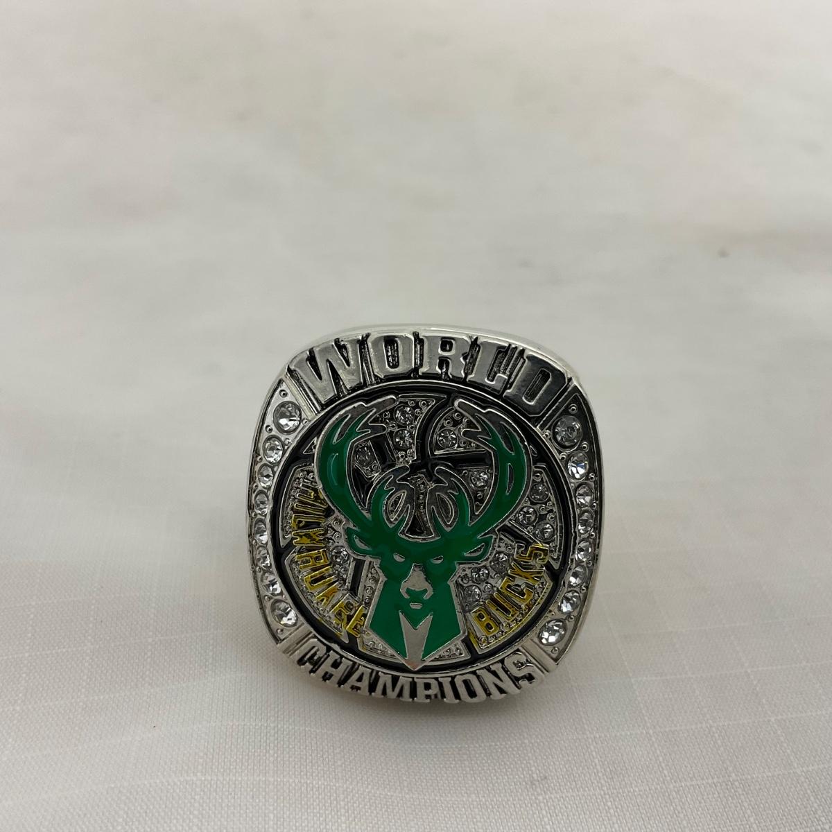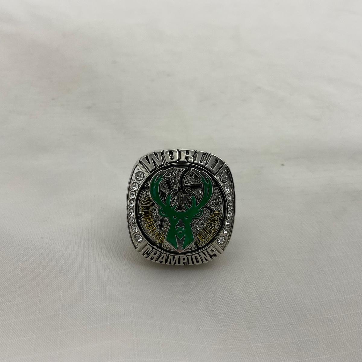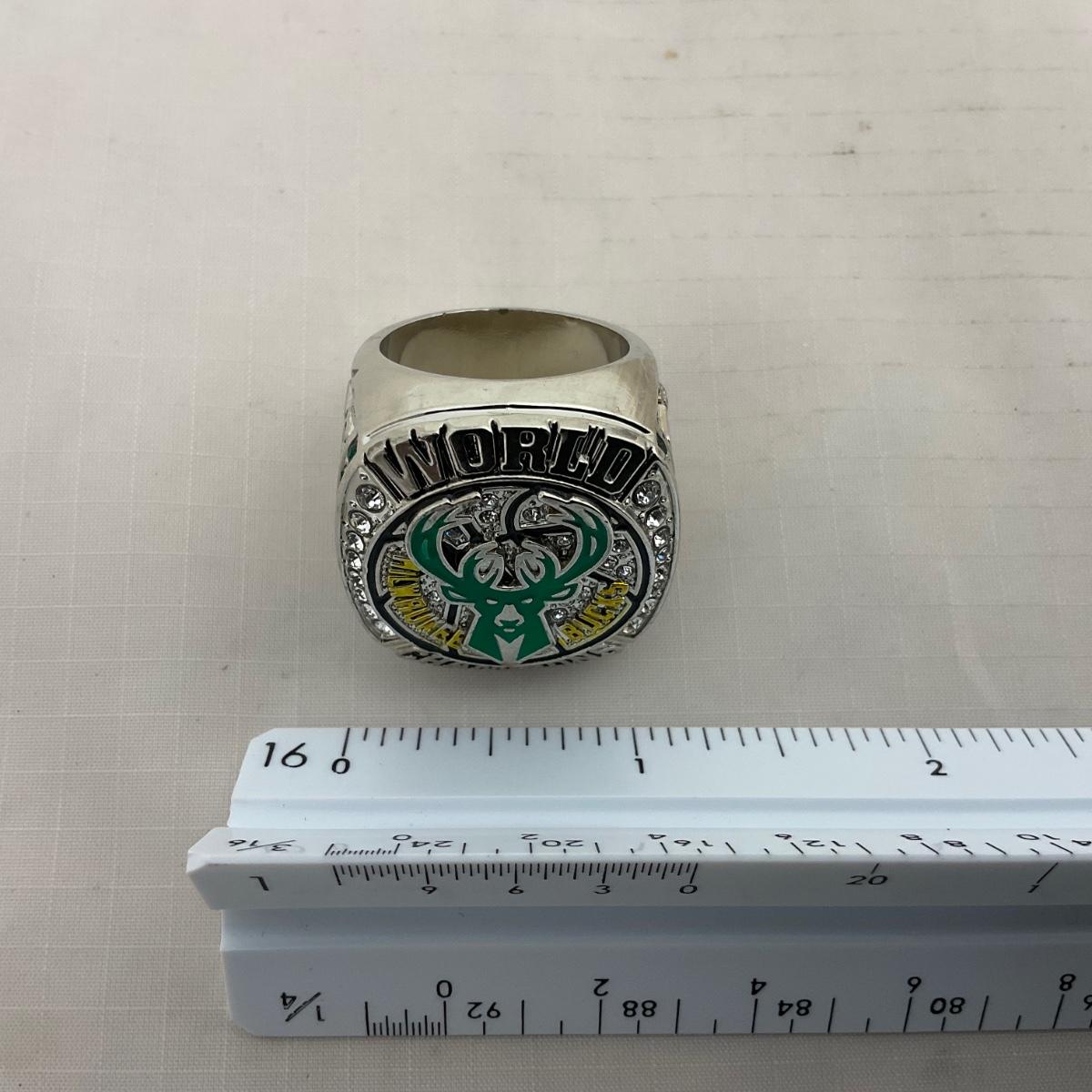 One 2020 replica Giannis Antentokounmpo Milwaukee Bucks Championship ring. Please see photos for details and condition. ::: Shipping is available on this lot. If you require shipping you must let us know at the close of the auction. We will coordinate with you after the item has been won. Shipping fees will include insurance up to or exceeding the value of all items being mailed. If you have any questions regarding this lot please contact the auctioneer either via this website, by direct email or by phone. PICK UP TIMES and other important information can be found in the TERMS and DESCRIPTION of the auction. Please take a look for pertinent information. Thanks!