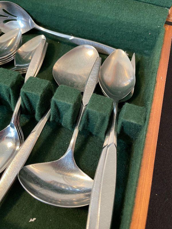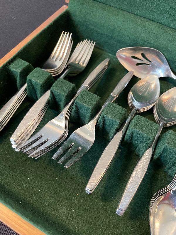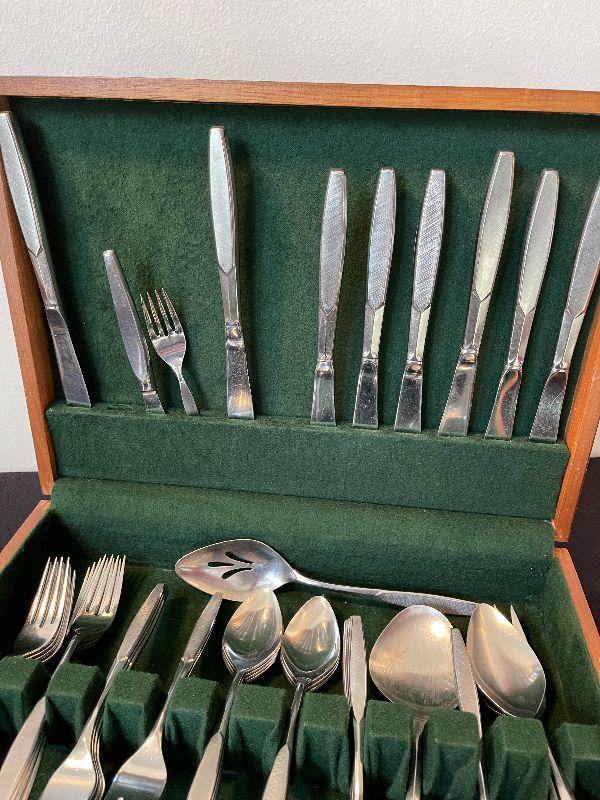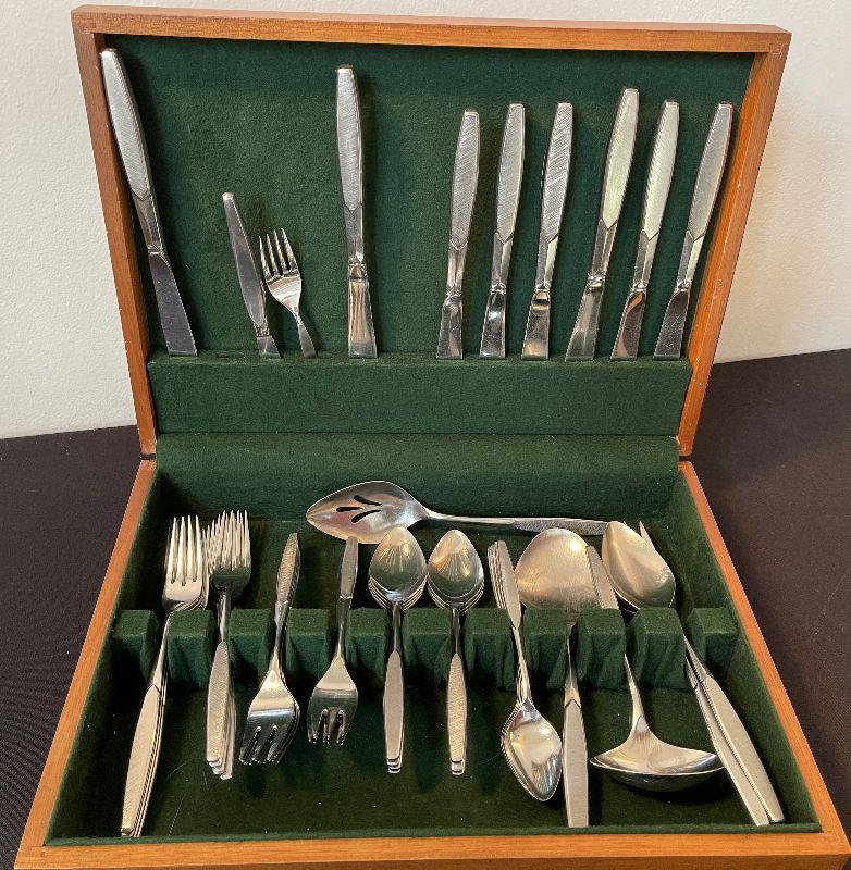 Used Service for 8 with Serving Pieces. 3 Teaspoons are missing.