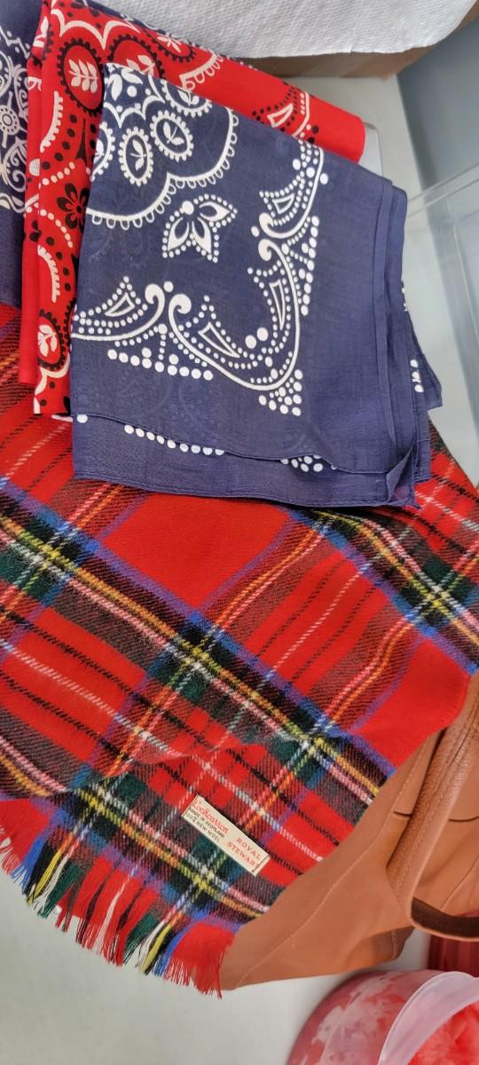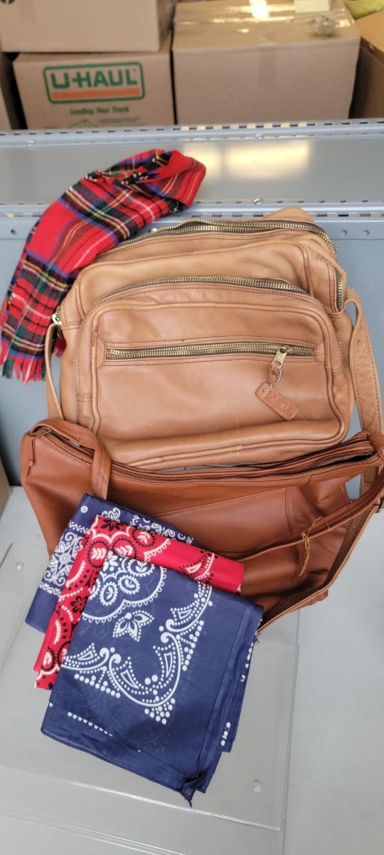 Tumi leather bag, Wilson leather handbag, bandanas