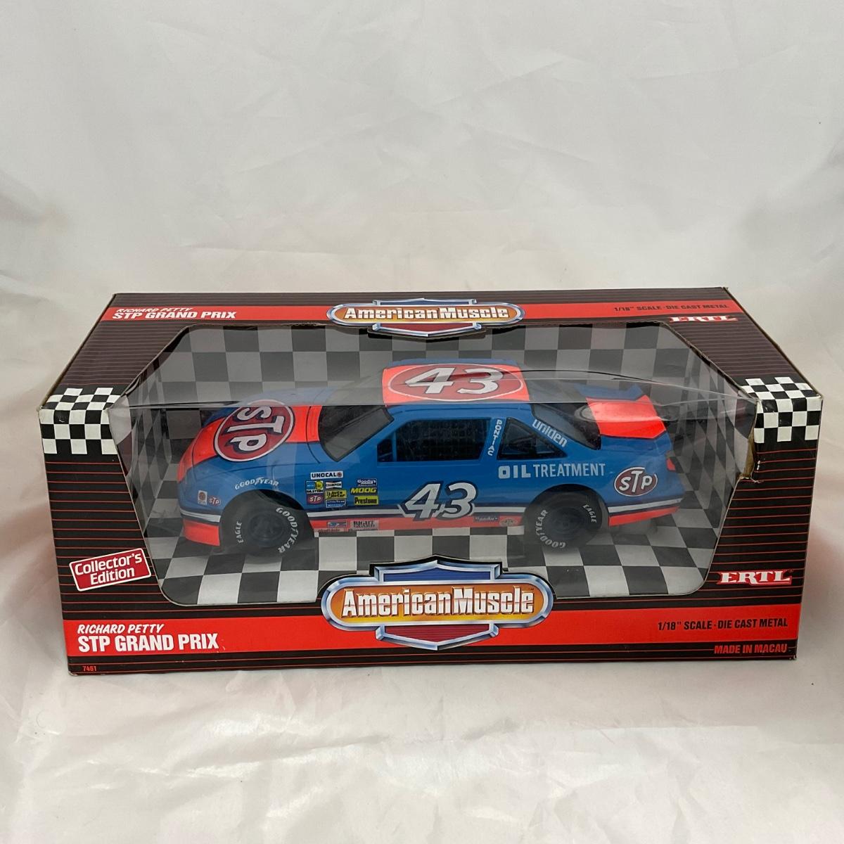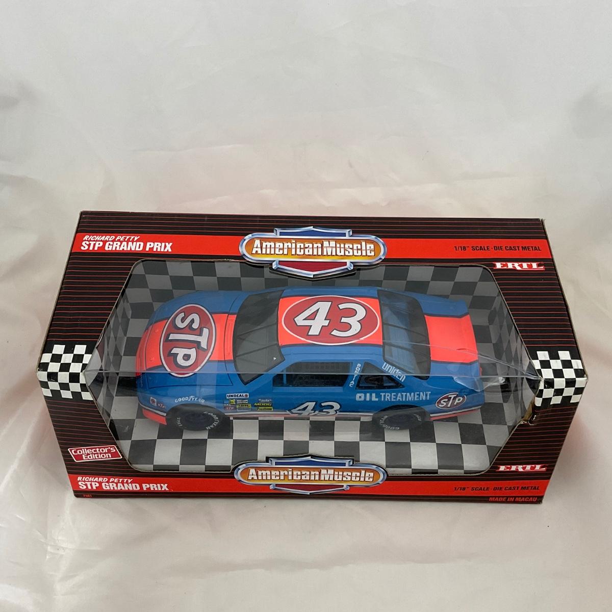 One NASCAR die cast 1:18 scale STP Grand Prix in box. Driver Richard Petty. Please see photos for details and condition. ::: Shipping is available on this lot. If you require shipping you must let us know at the close of the auction. We will coordinate with you after the item has been won. Shipping fees will include insurance up to or exceeding the value of all items being mailed. If you have any questions regarding this lot please contact the auctioneer either via this website, by direct email or by phone. PICK UP TIMES and other important information can be found in the TERMS and DESCRIPTION of the auction. Please take a look for pertinent information. Thanks!
