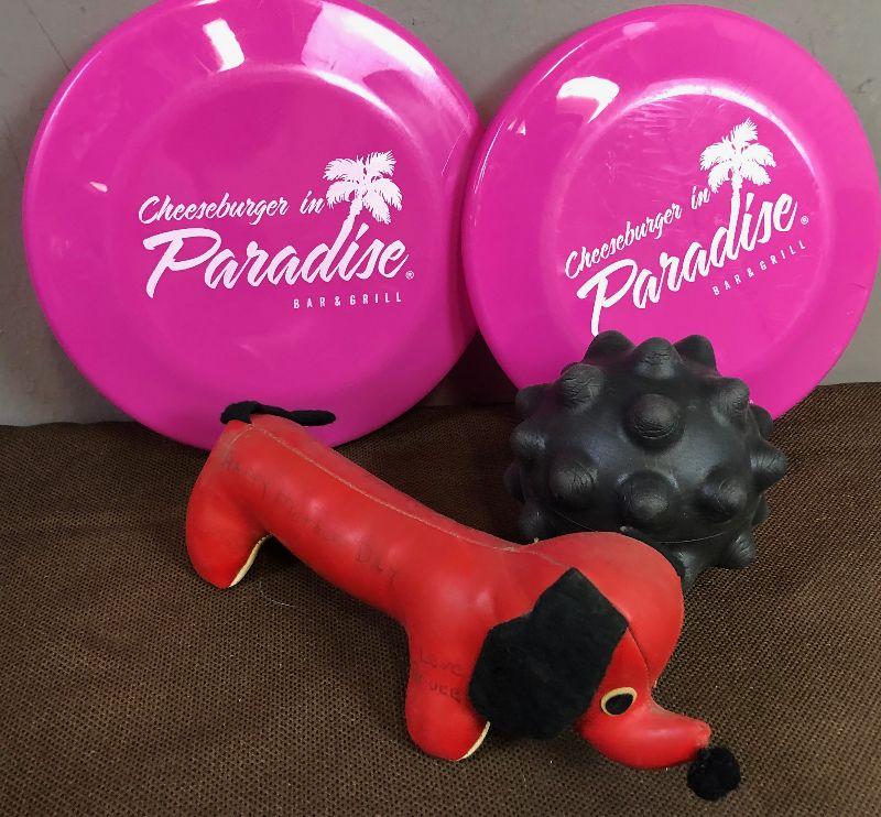 2 Frisbees, a dog and a ball - Used good condition - collectible