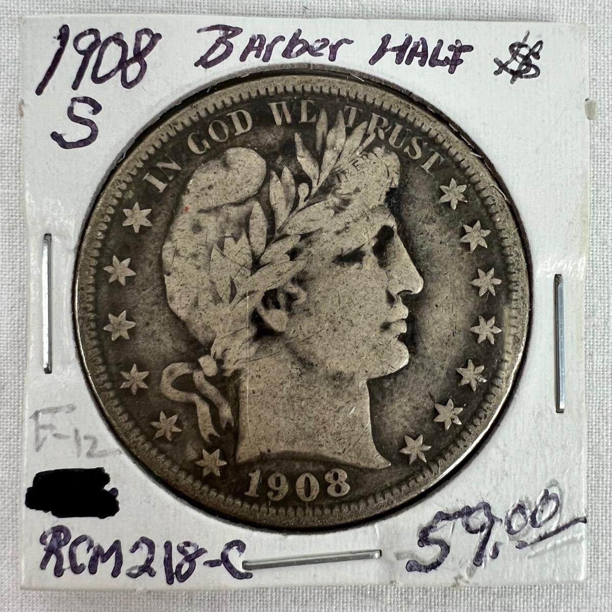 650 1908-S Barber Half Dollar F-12 RCM218-C