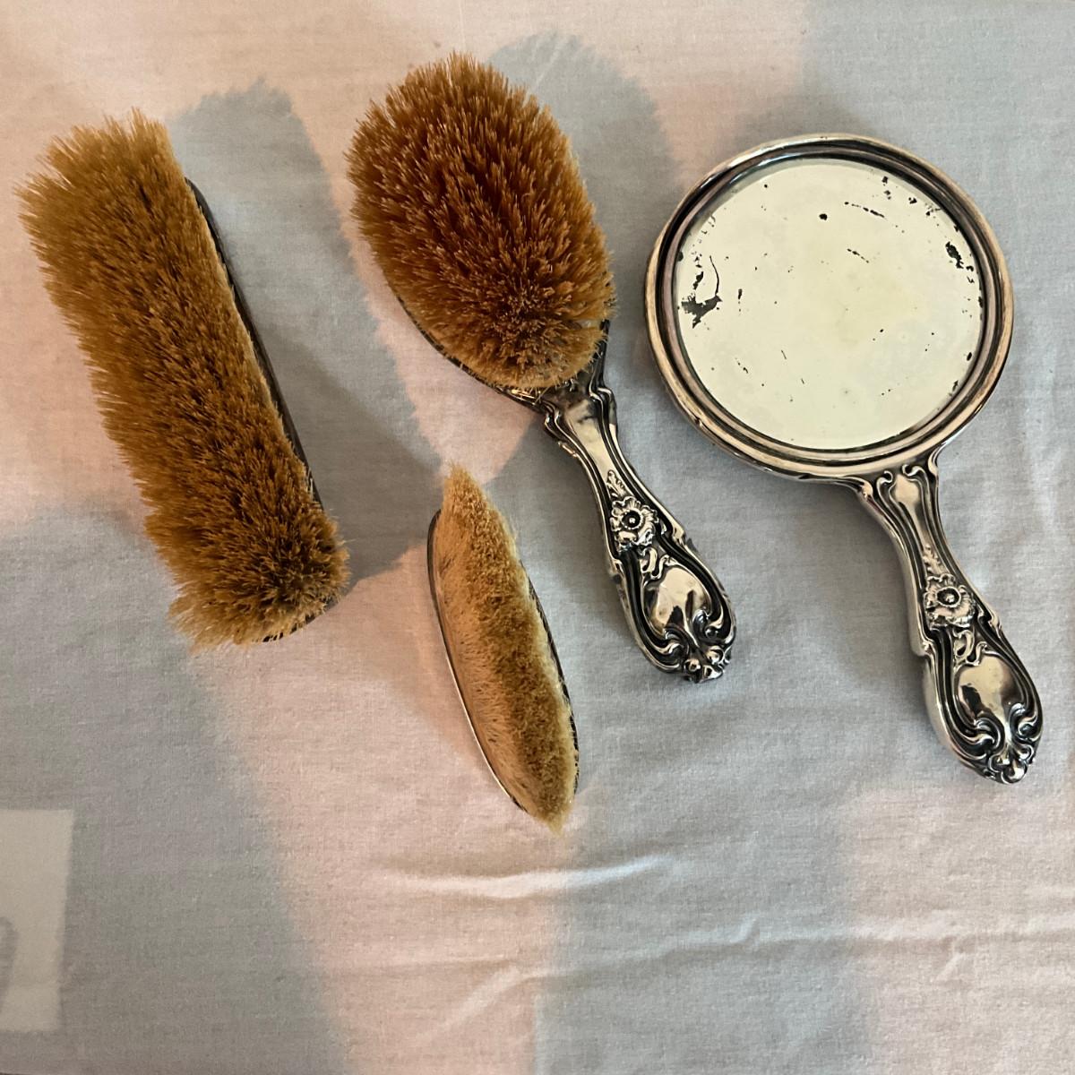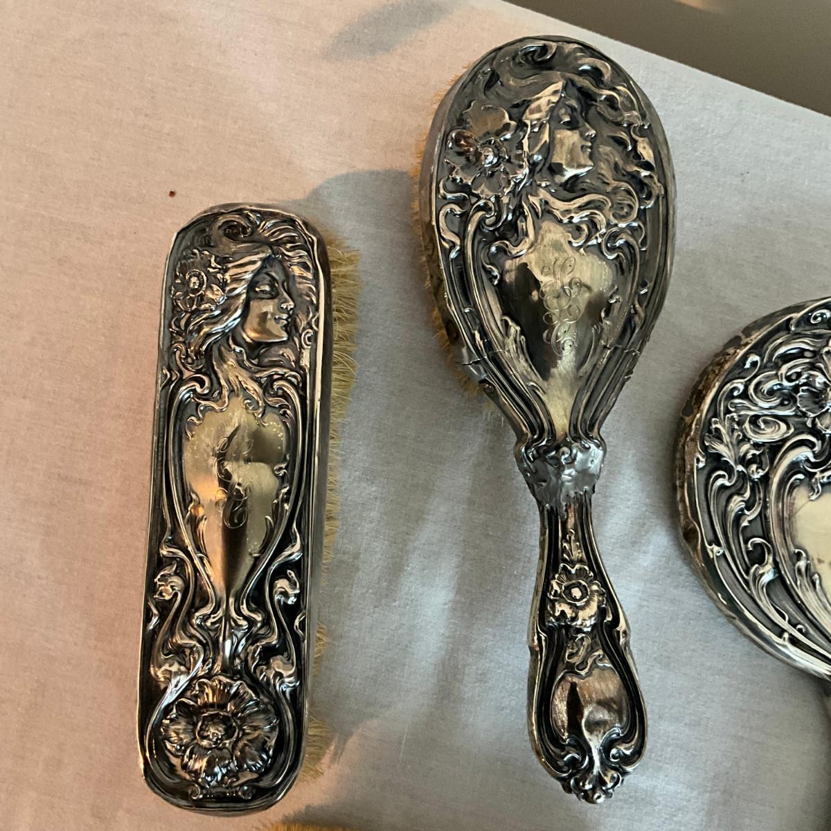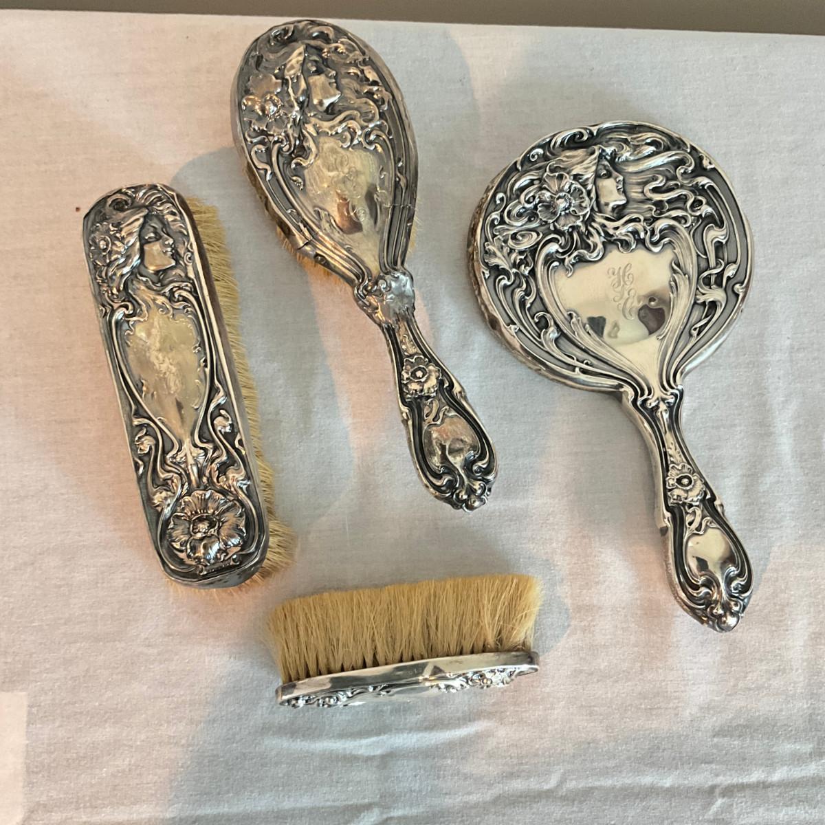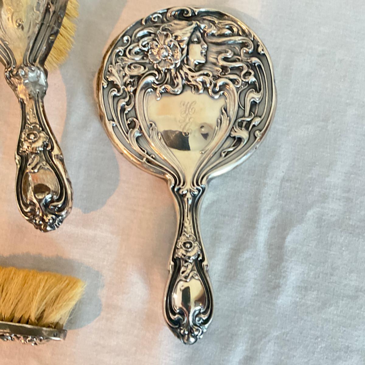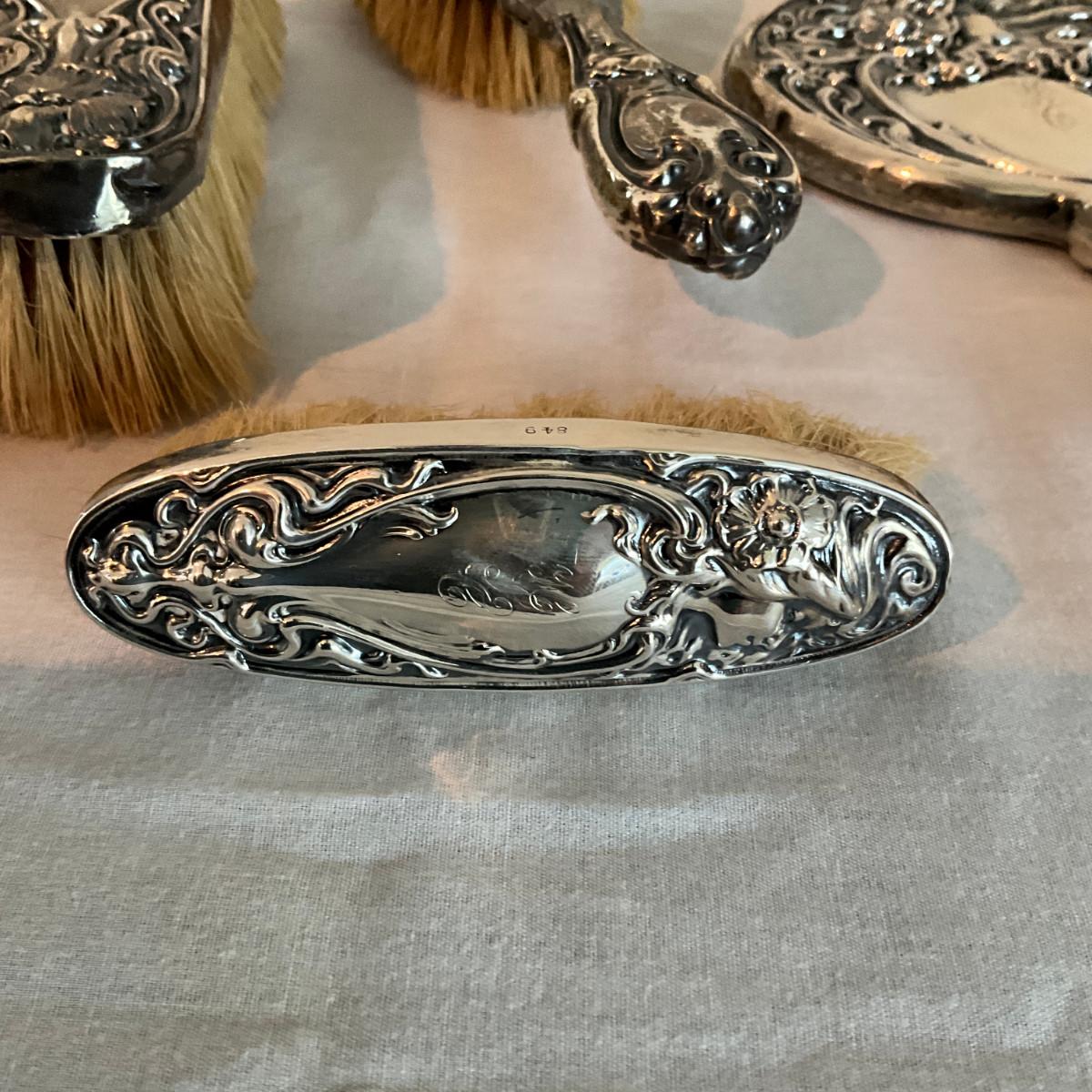 650 Lot of Art Nouveau Silver Brush & Mirror Set