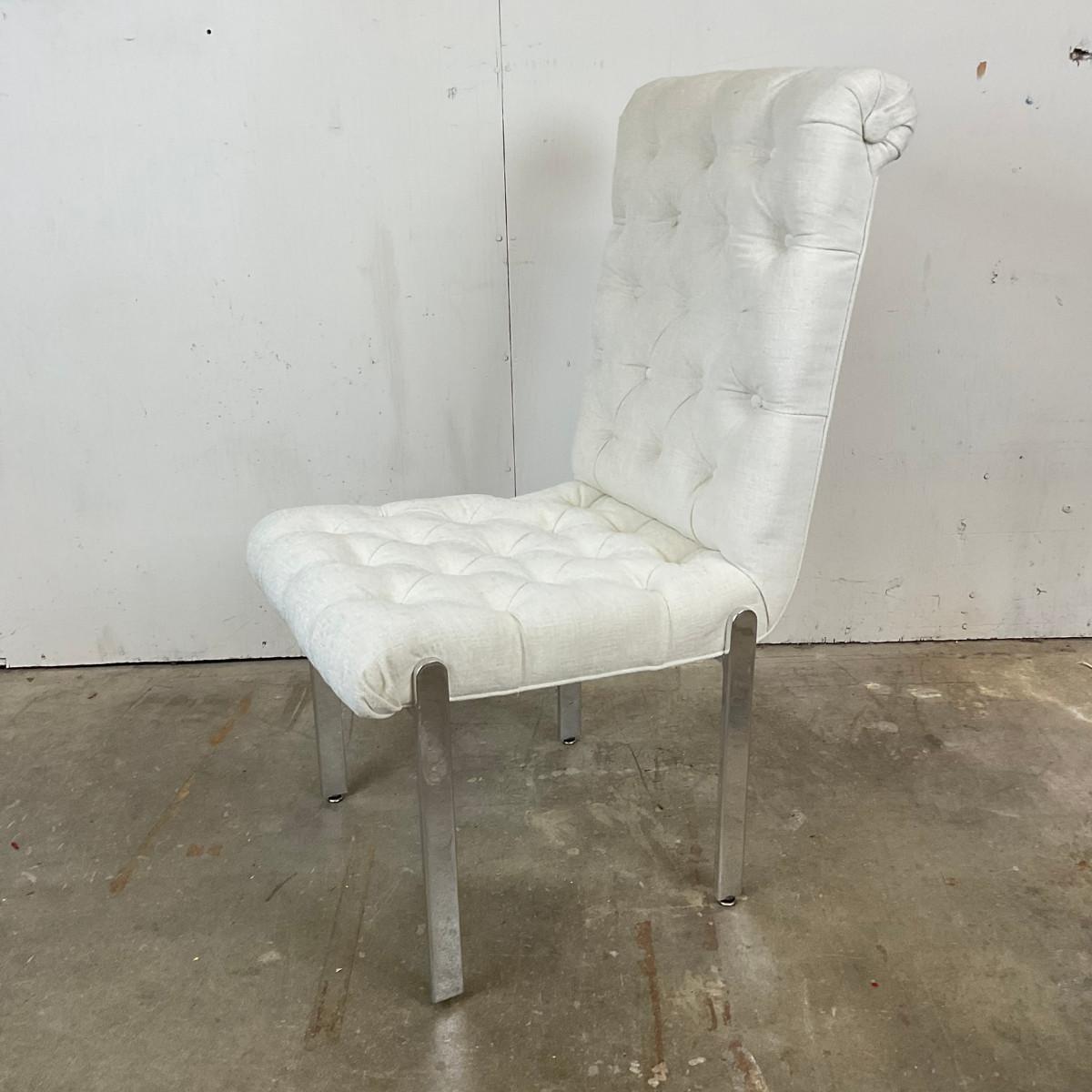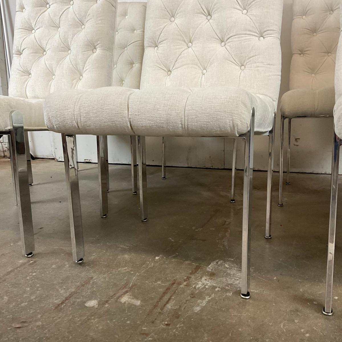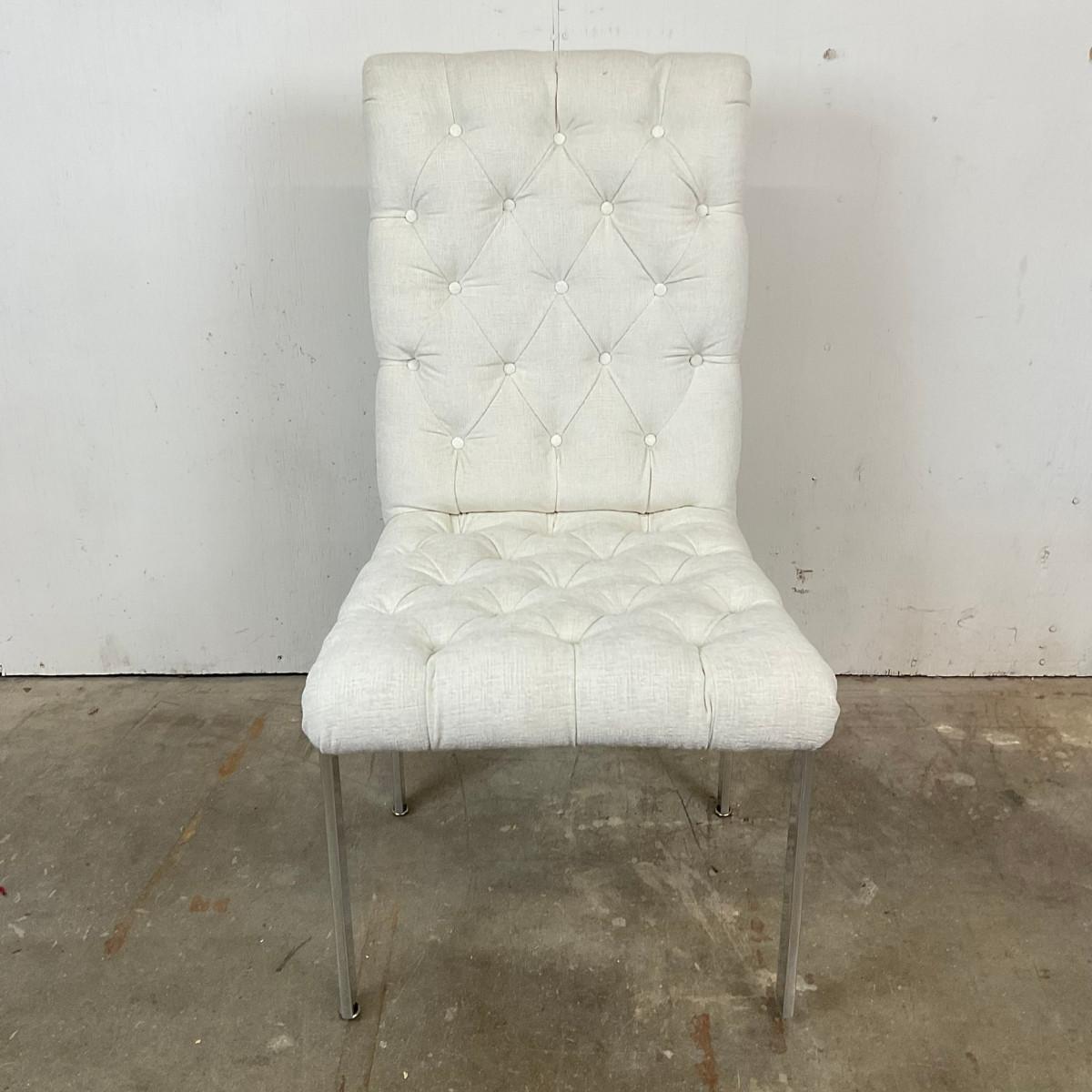 650 Set of Six Modern Style Upholstered Button Tufted Dining Chairs With Stainless Steel Legs