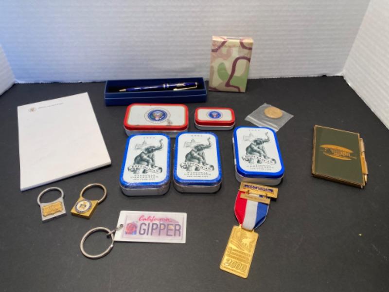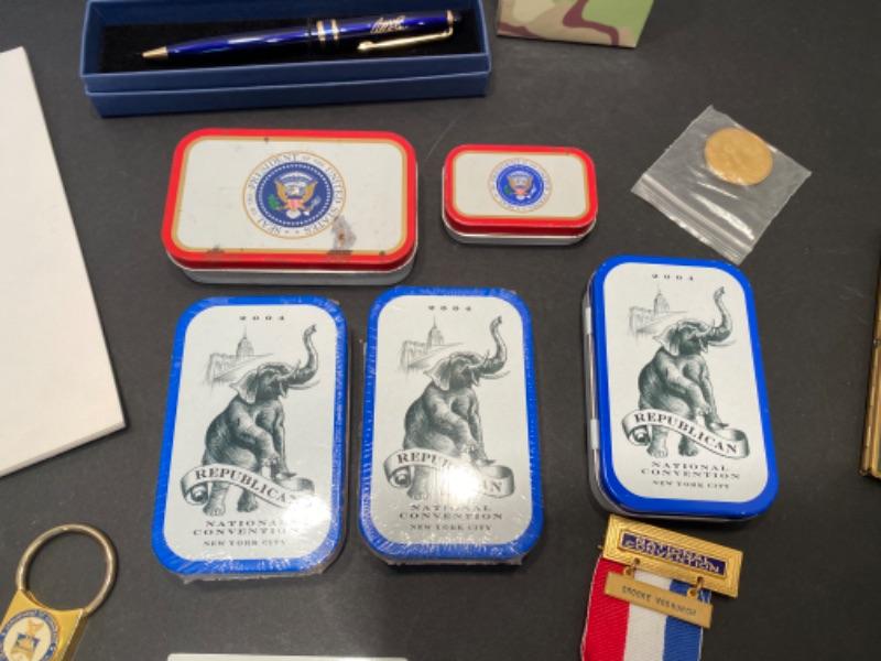 Republican National Convention Keepsakes such as containers of mints ( 2 unopened ), note pads, cards, key fobs, coins and more