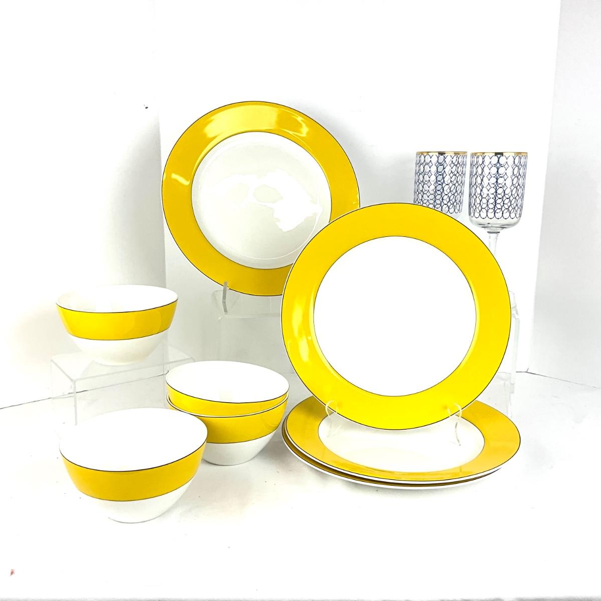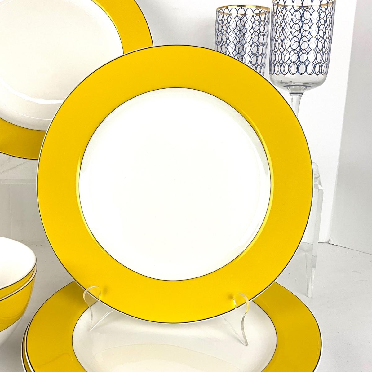 Set of 4 dinner plates by Kate Spade "Rutherford Circle Yellow" measuring 11.5" diameter