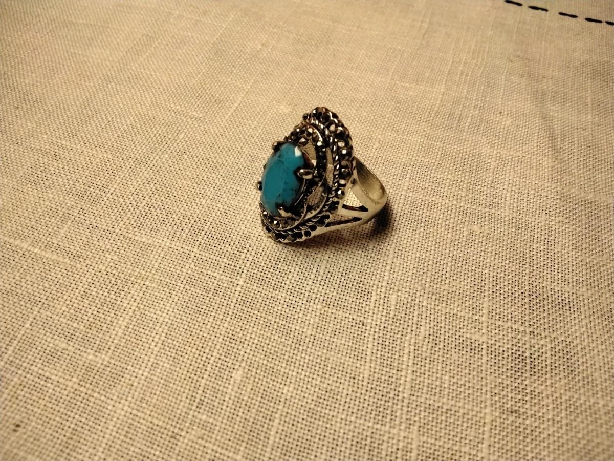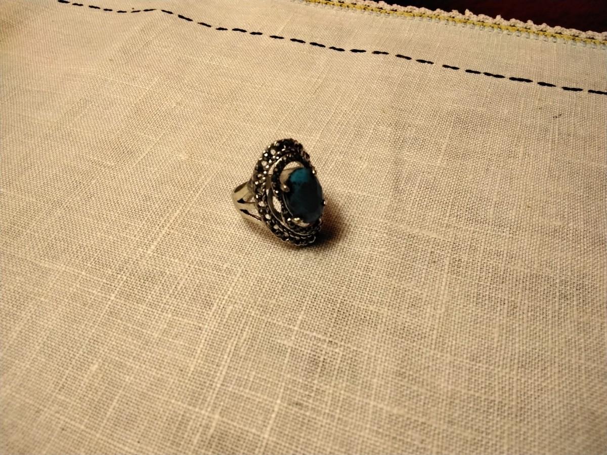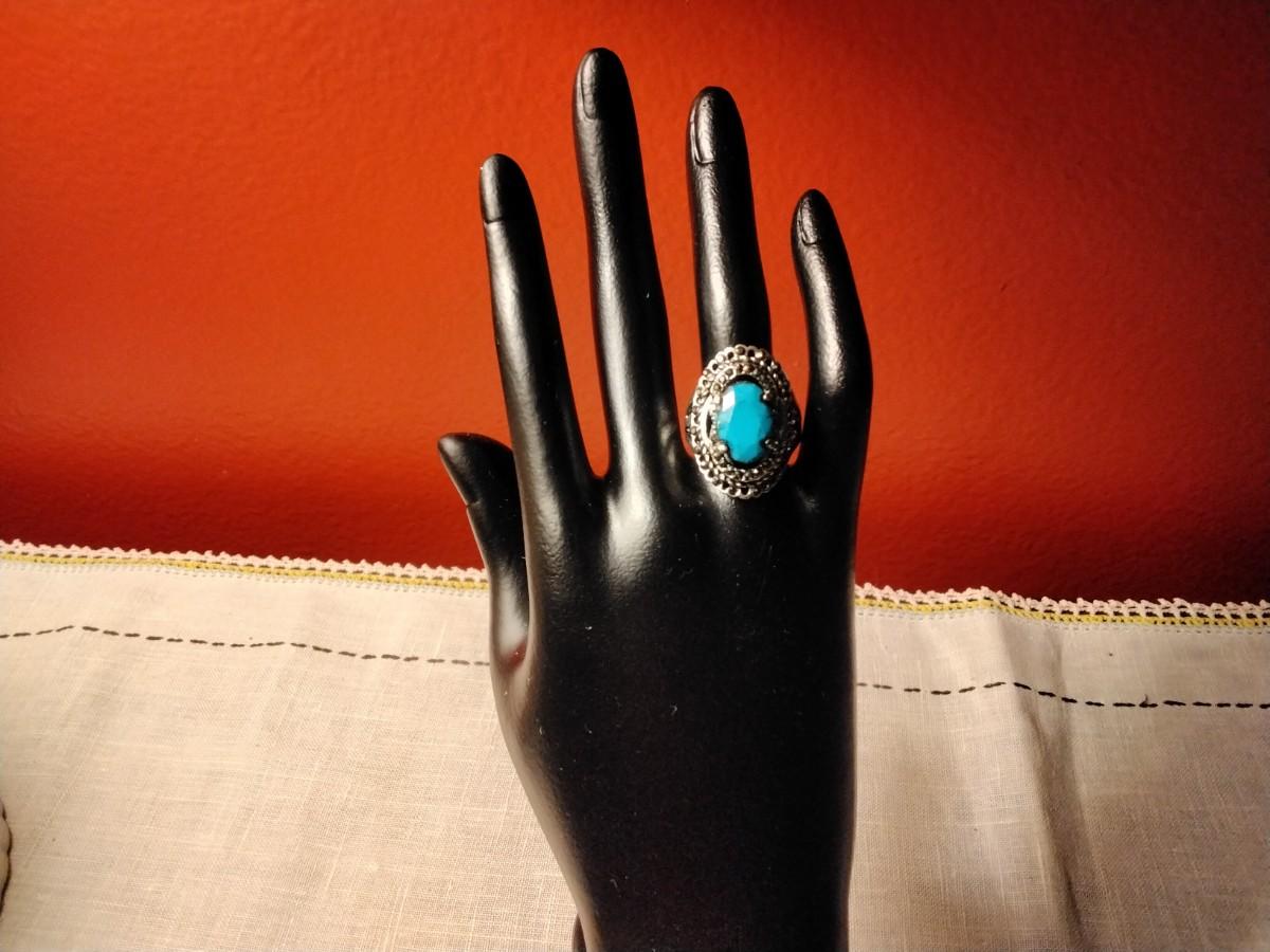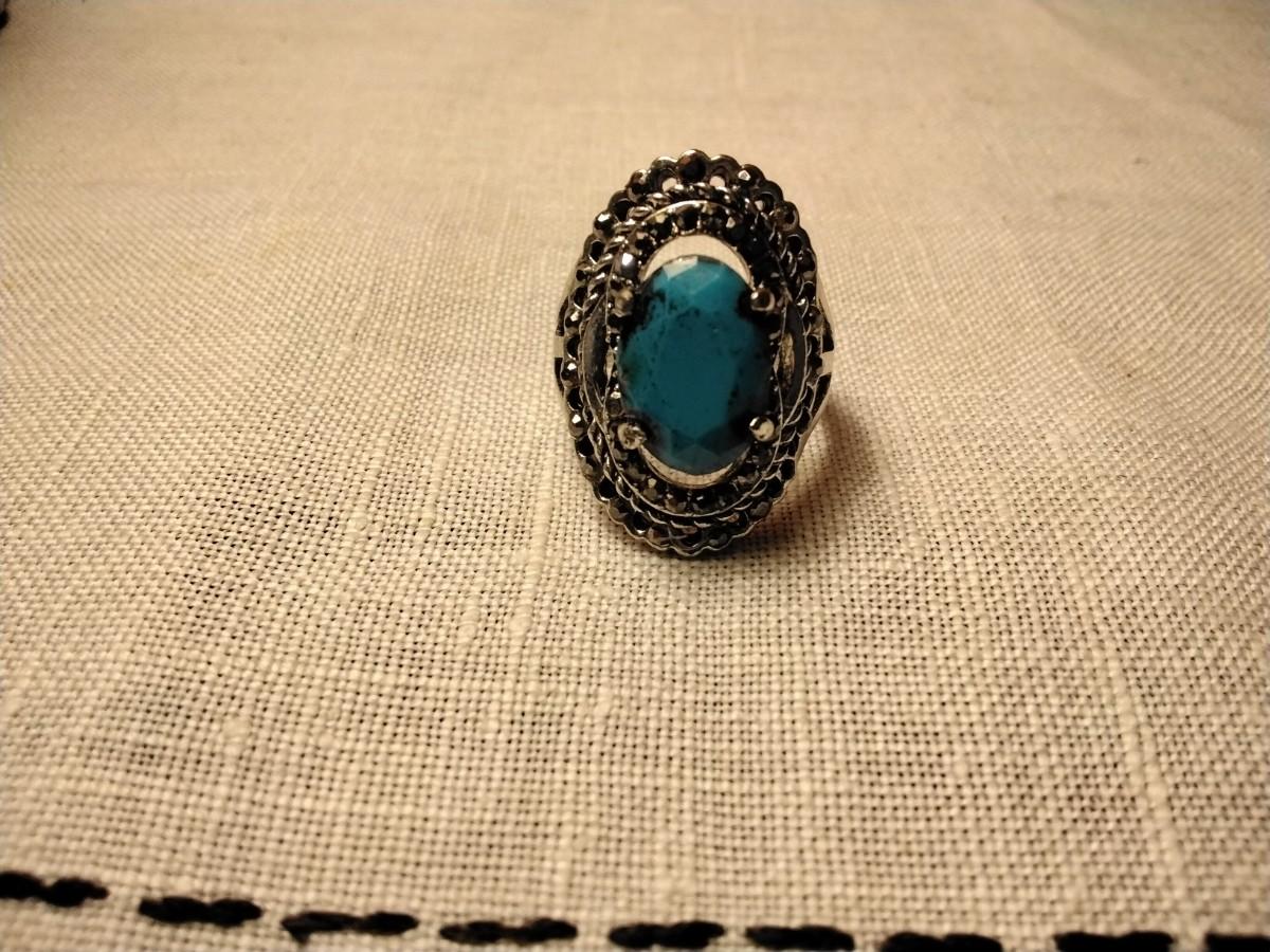6.50ctw Blue Turquoise Oval Cut & Marcasite Silver Ring Size 9