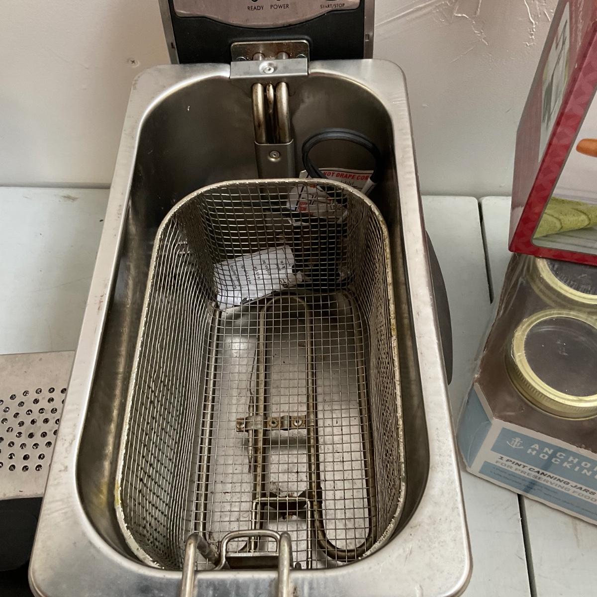 new canning jars with sealing lids, apple peeler and krups opener are new in box , and delonghi fryer turns on and heats