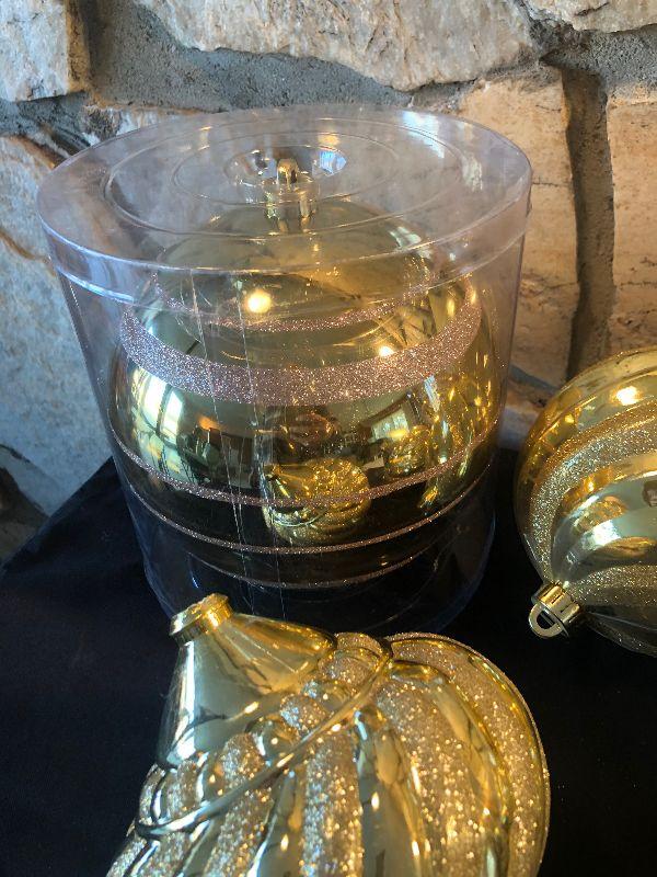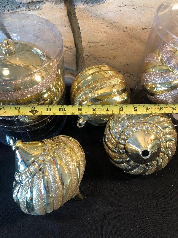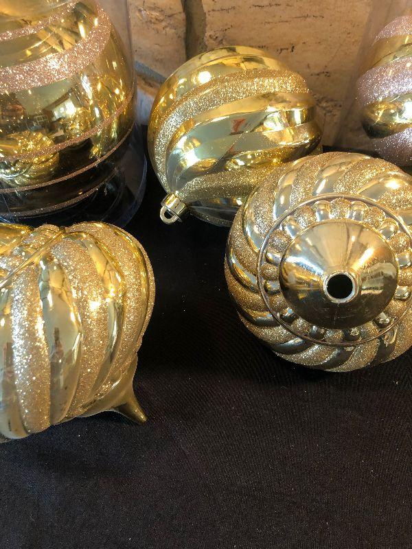 #654 Gold Toned (5) Extra Large Ornaments See picture for size