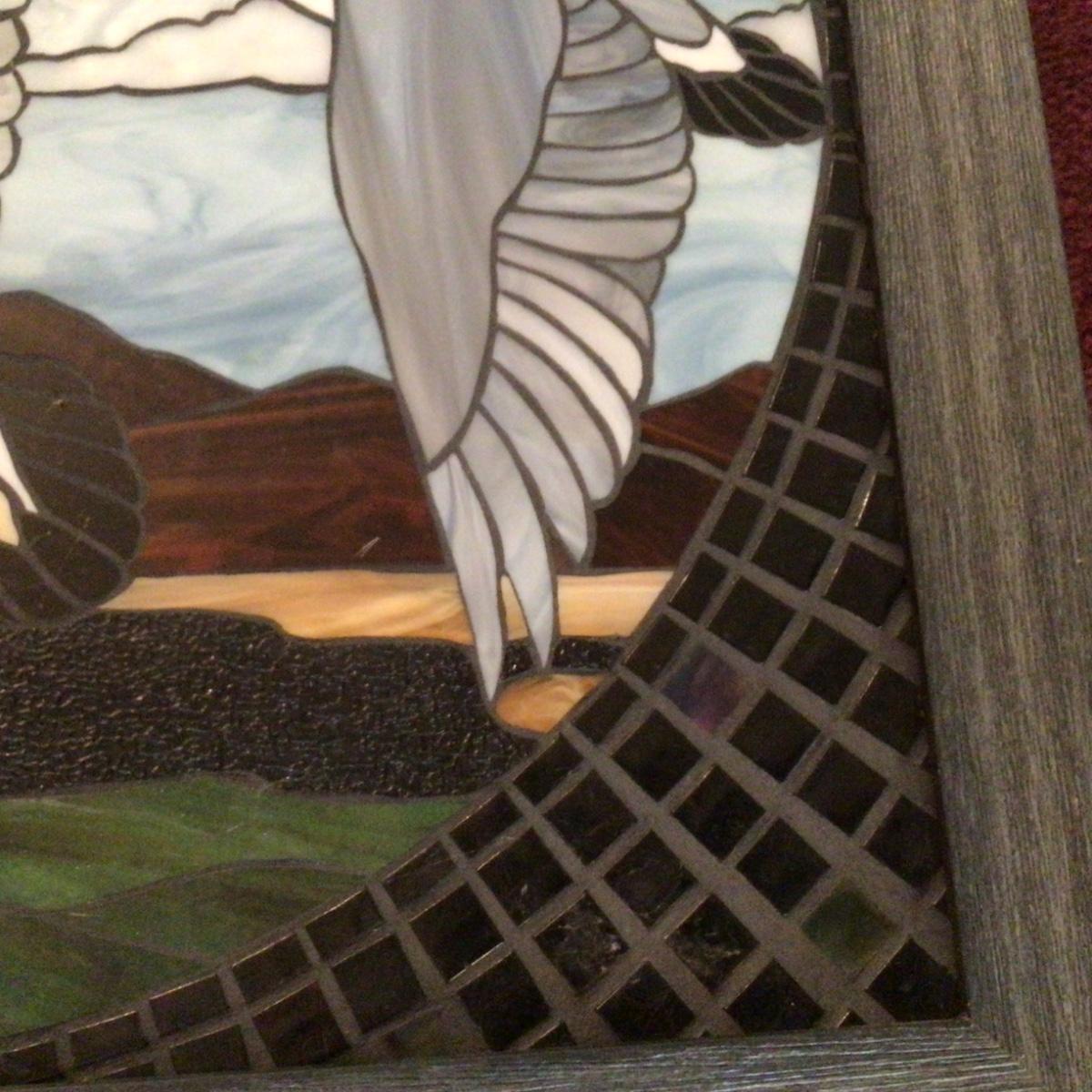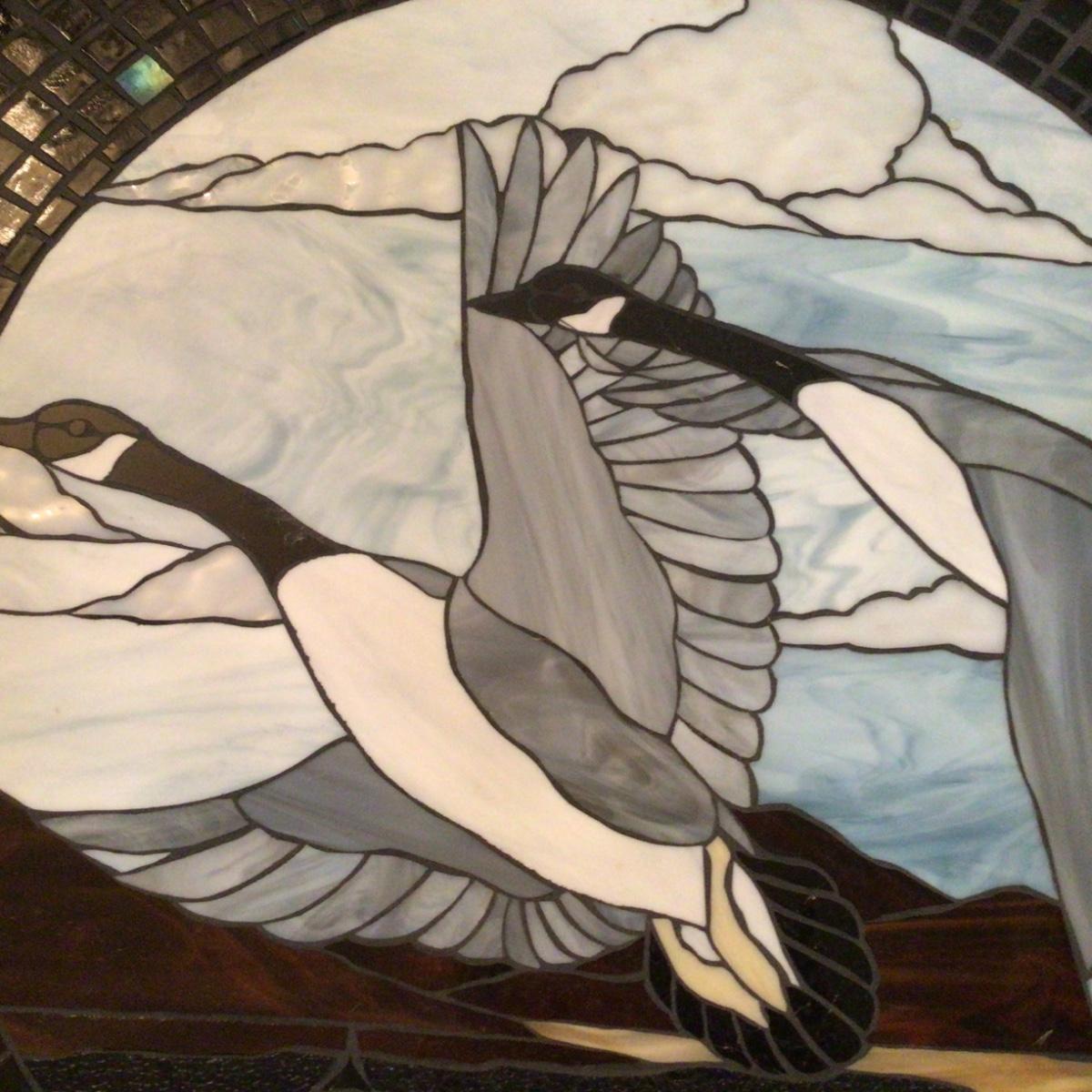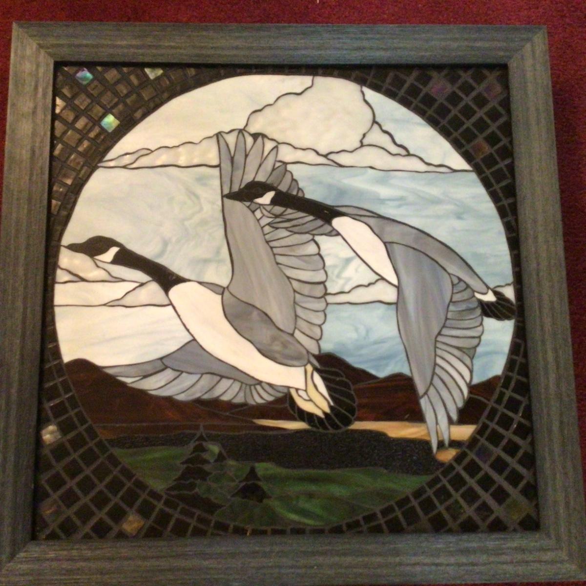 654 Mosaic Geese Stained Glass Artisan Made Framed Art