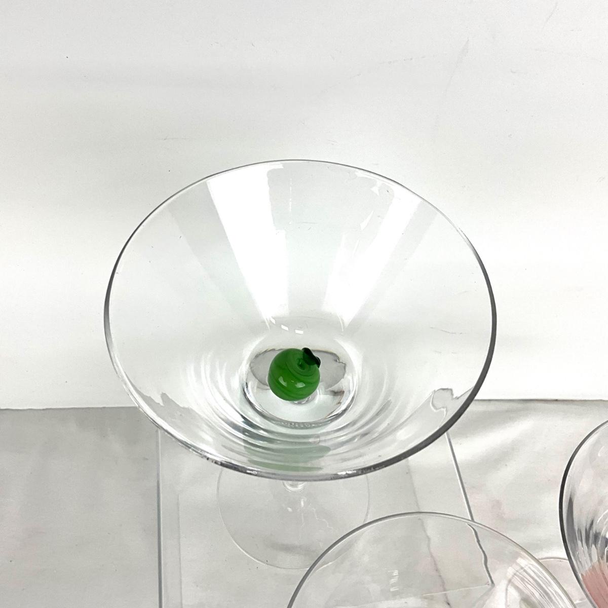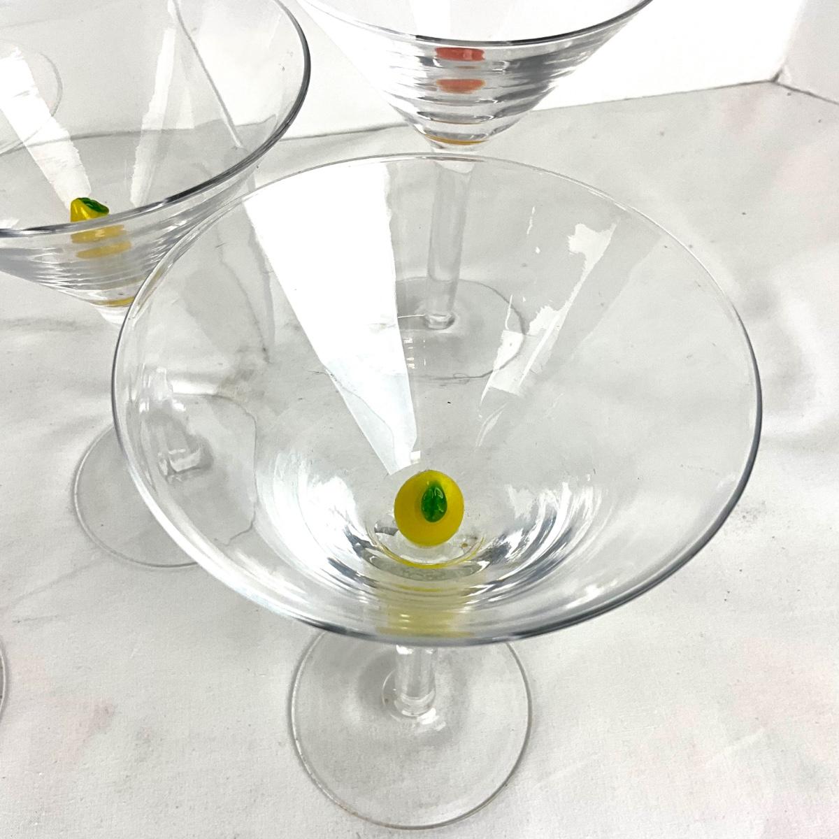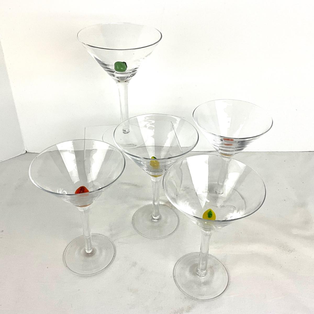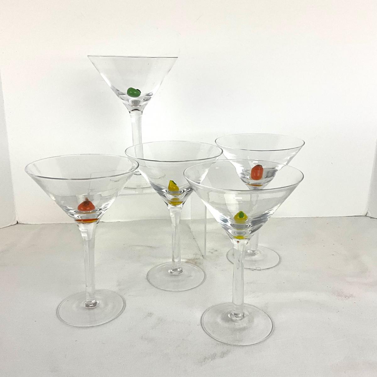 Set of 5 crystal martini glasses with glass fruit at the bottom