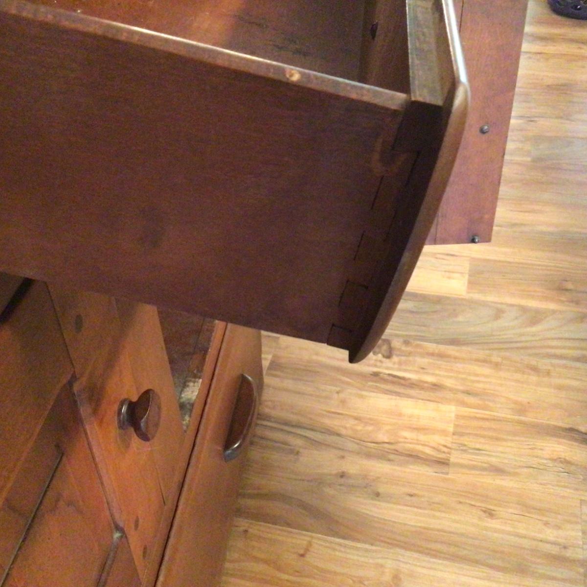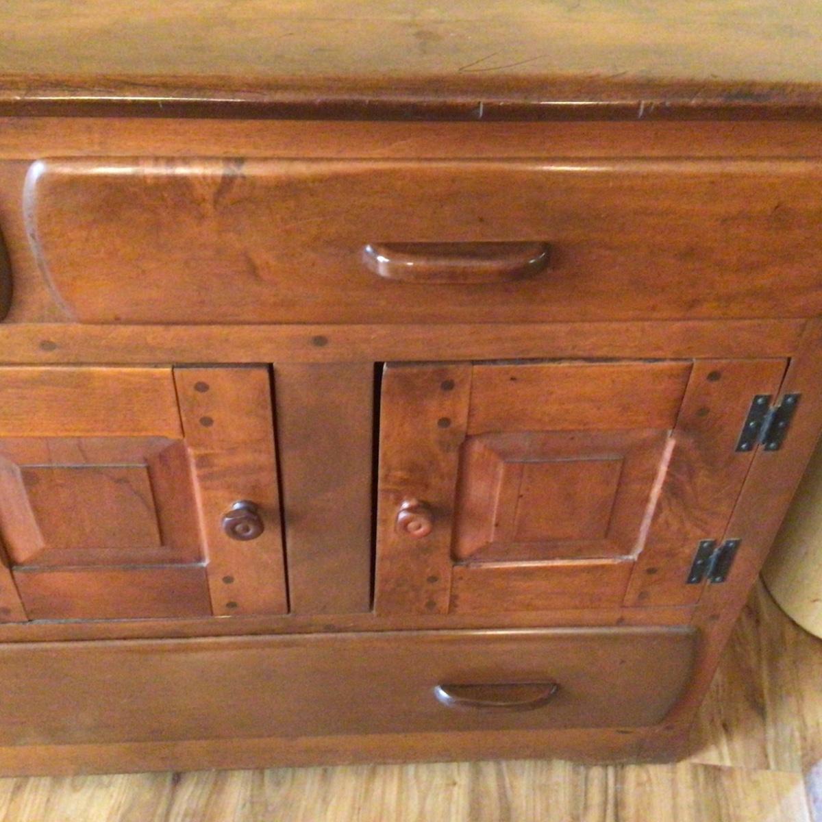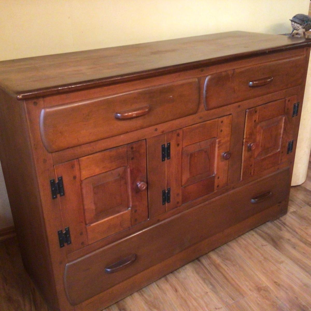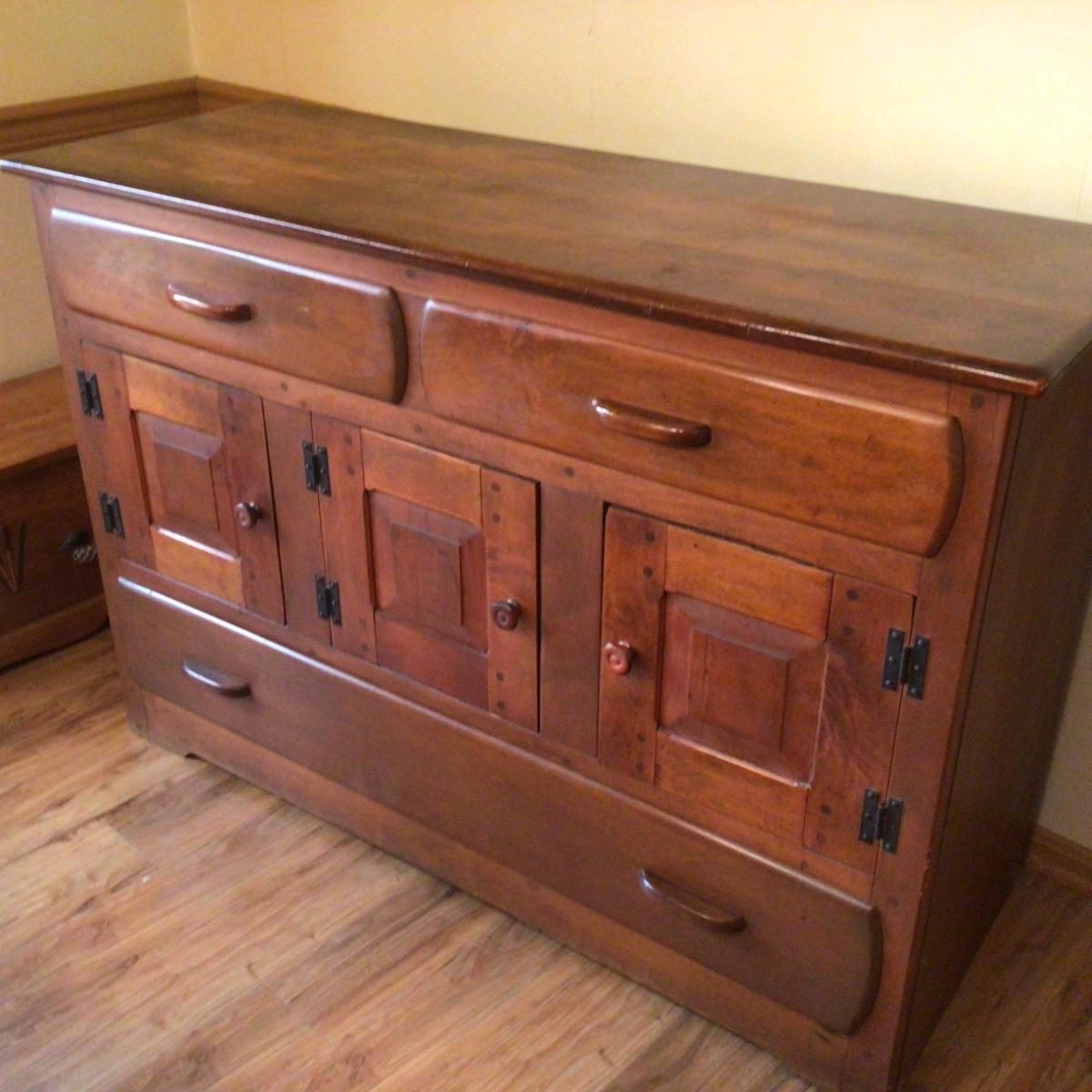 The server is 50” x 34” high x18“ deep. There are 3 drawers and 3 cabinets. Server may be Stickley.