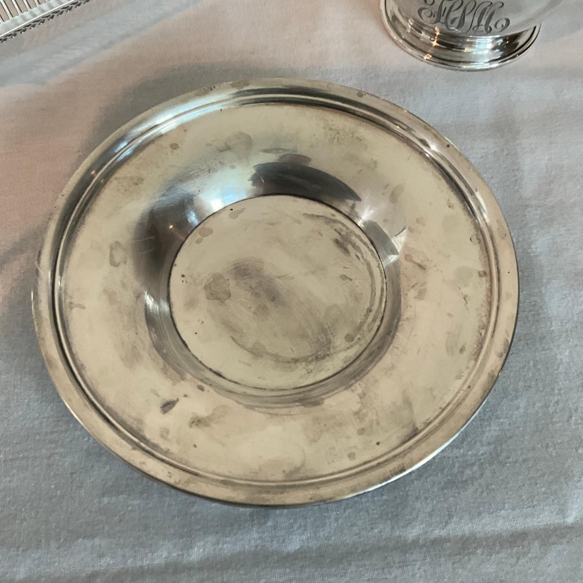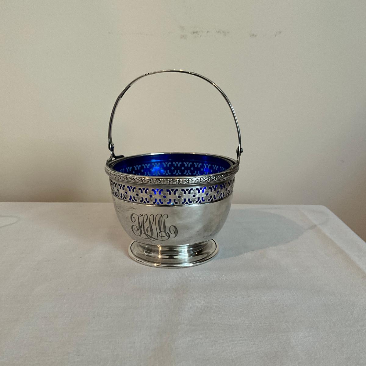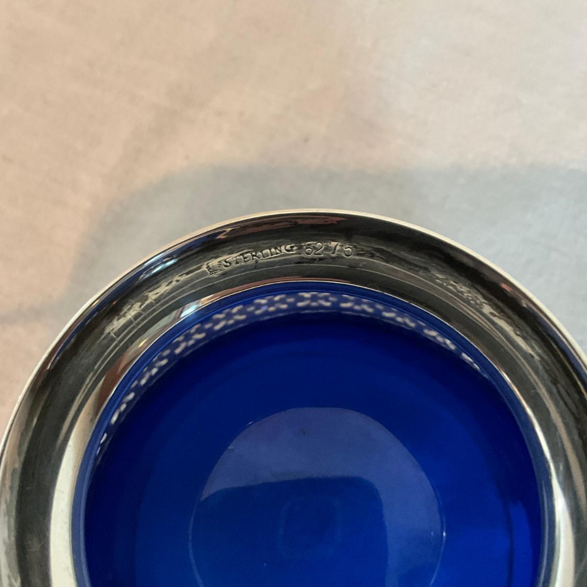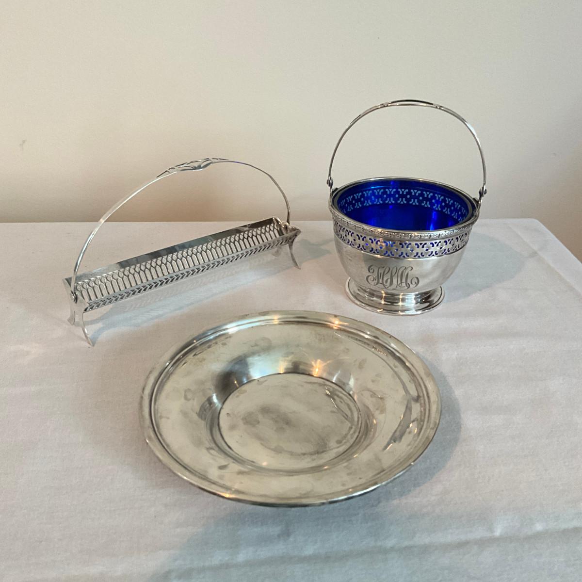 656 Set of Sterling Silver Trays & Blue Glass Lined Sterling Basket