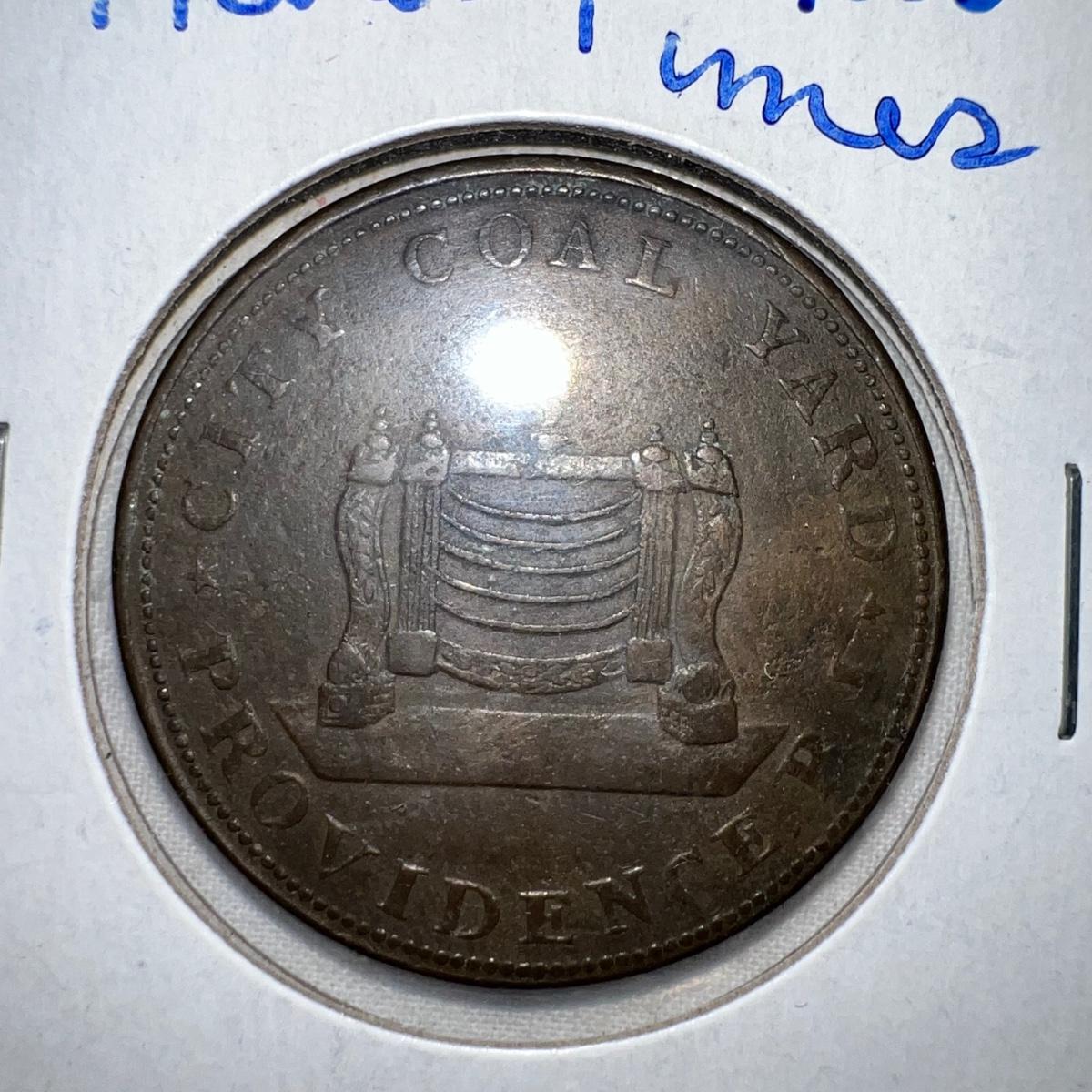 657 1833 "Hard Times" Copper Token: City Coal Yard Providence, Ephraim A. Hathaway