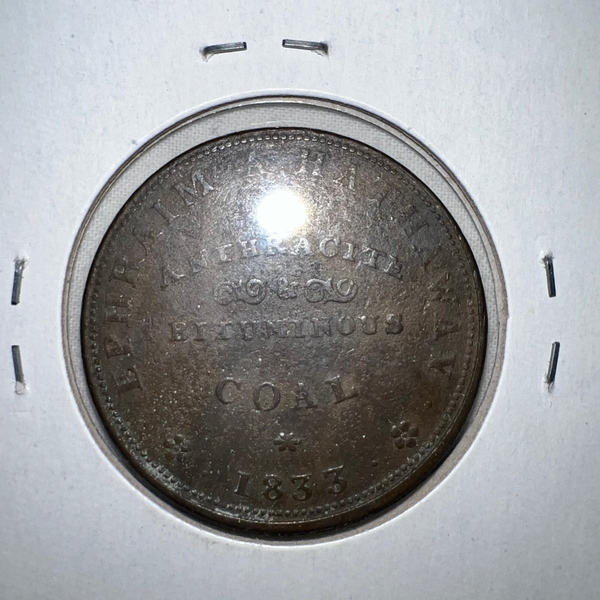 1833 "Hard Times" Copper Token: City Coal Yard Providence, Ephraim A. Hathaway.