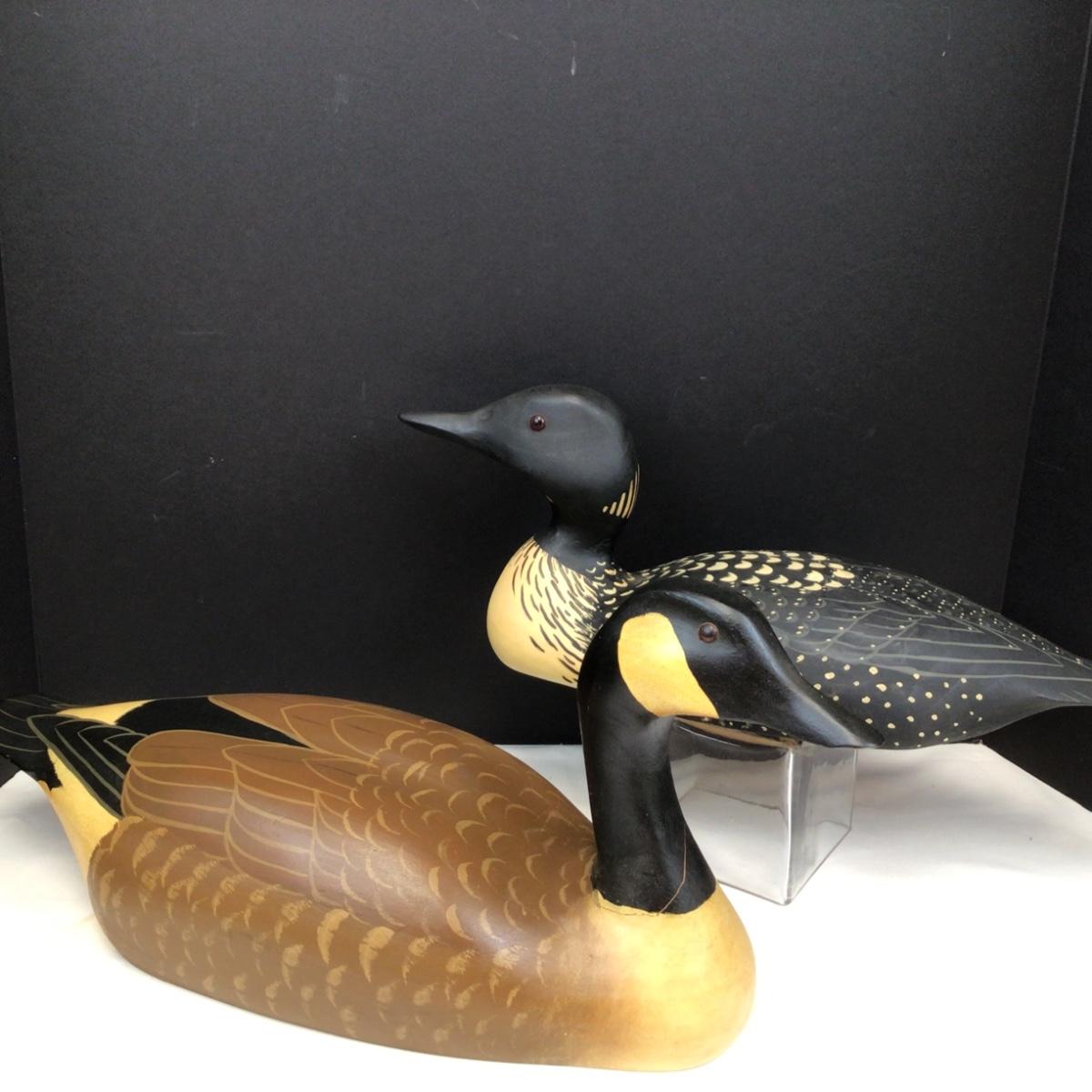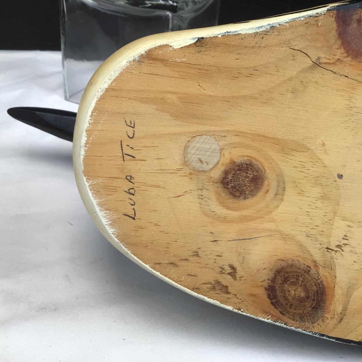The decoys are signed by Luba Tice, the goose has a crack on the base of the neck.