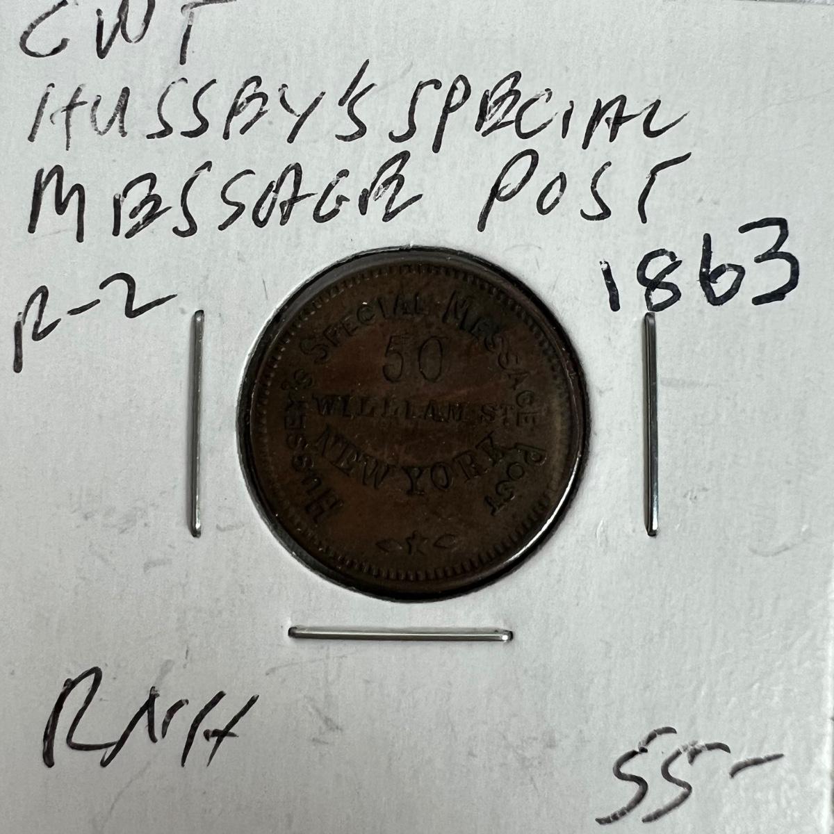 659 1863 Civil War Time Business Token Hussy's Special Message Post. 50 William St New York