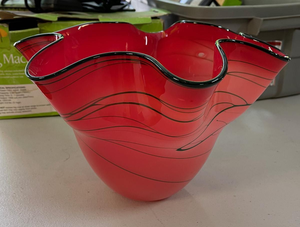 #659G Hand Blown Glass Vase Red and Black