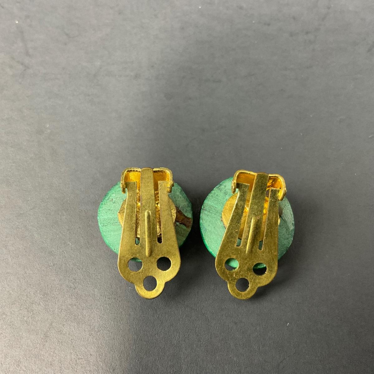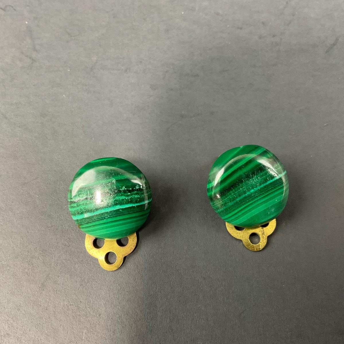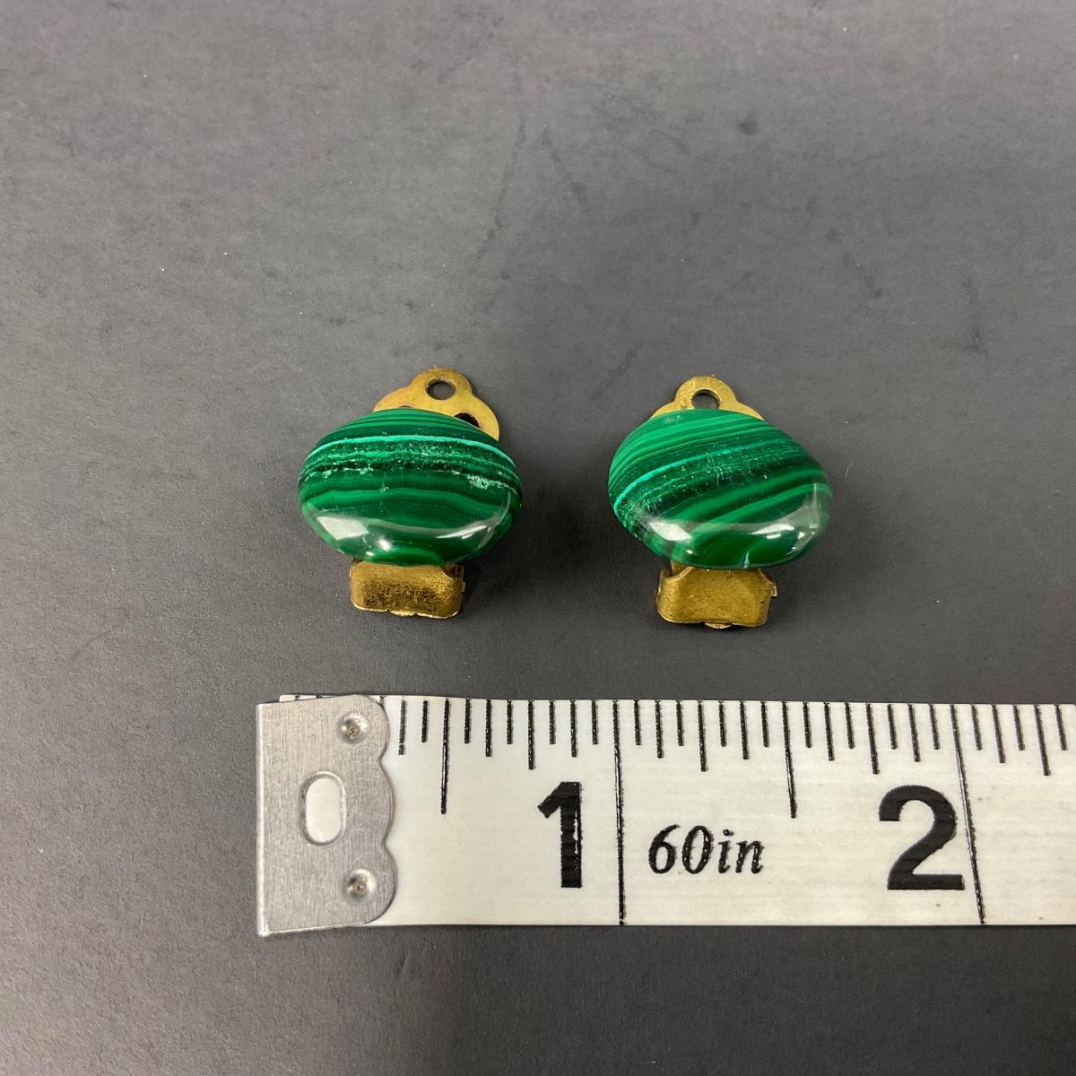 Assorted Malachite pieces including two necklaces and a pair of clip earrings. There does appear to be some slight damage on one of the pendants, but in otherwise great condition. Please see photos for details and condition. Any condition statement is given as a courtesy to a client, is an opinion, and should not be treated as a statement of fact. Reference to condition written, oral or within a condition report shall not be regarded as a full account of condition and may not include all defects, alterations, or restorations. Absence of a condition report does not imply a lot is flawless or lacking imperfections or damage. Katherine’s Auction & Appraisal Service shall have no responsibility for any error or omission. Returns shall not be accepted on the basis of condition. ::: Shipping is available on this lot. If you require shipping you must let us know at the close of the auction. We will coordinate with you after the item has been won. Shipping fees will include insurance up to or exceeding the value of all items being mailed. If you have any questions regarding this lot please contact the auctioneer either via this website, by direct email or by phone. PICK UP TIMES and other important information can be found in the TERMS and DESCRIPTION of the auction. Please take a look for pertinent information. Thanks!