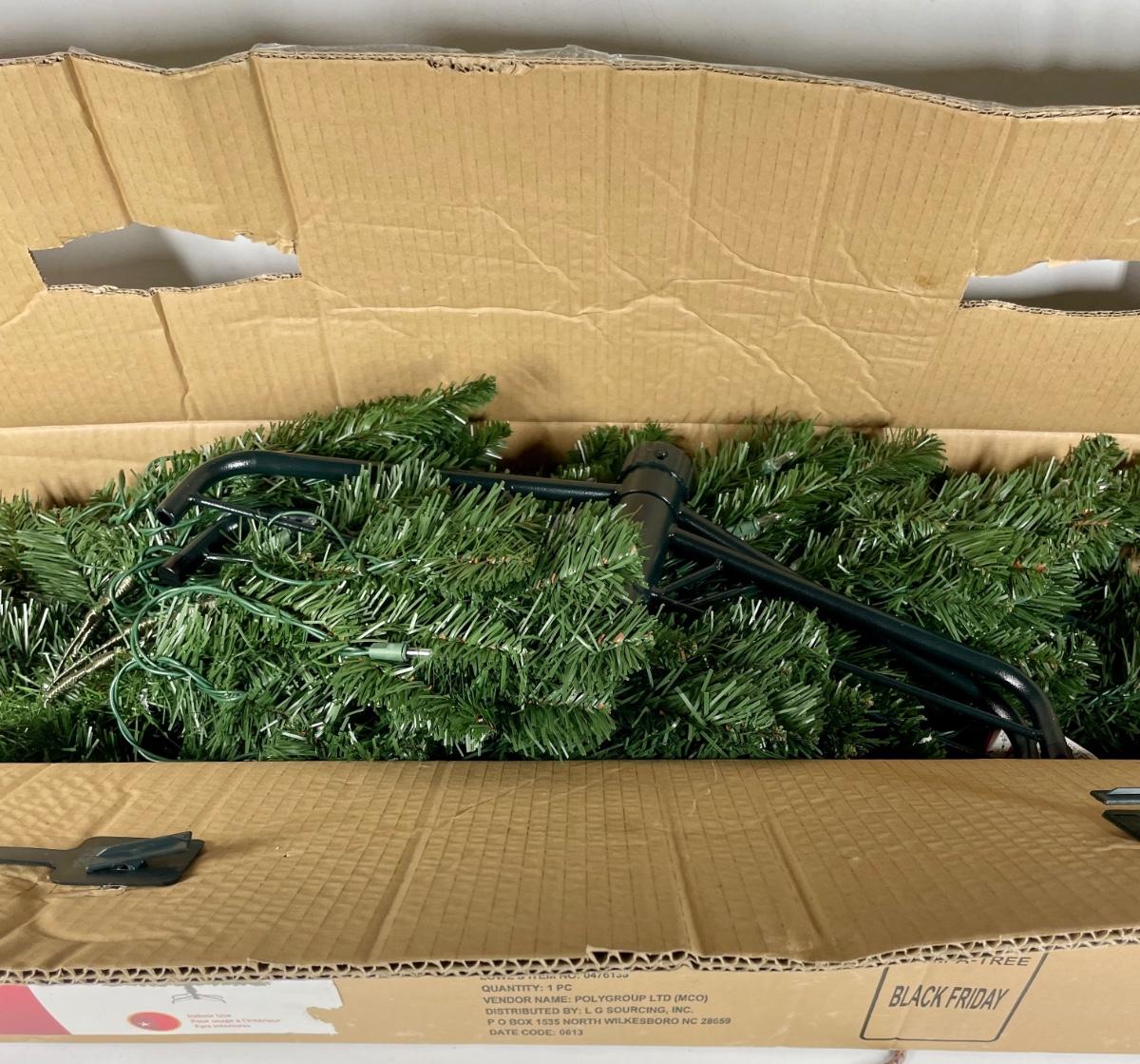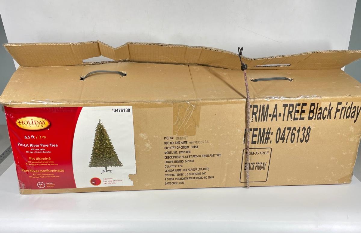 Artificial Christmas tree 6.5 feet tall, pre-lit with 400 clear lights. Stand included. Originally sold through Lowe’s home improvement.