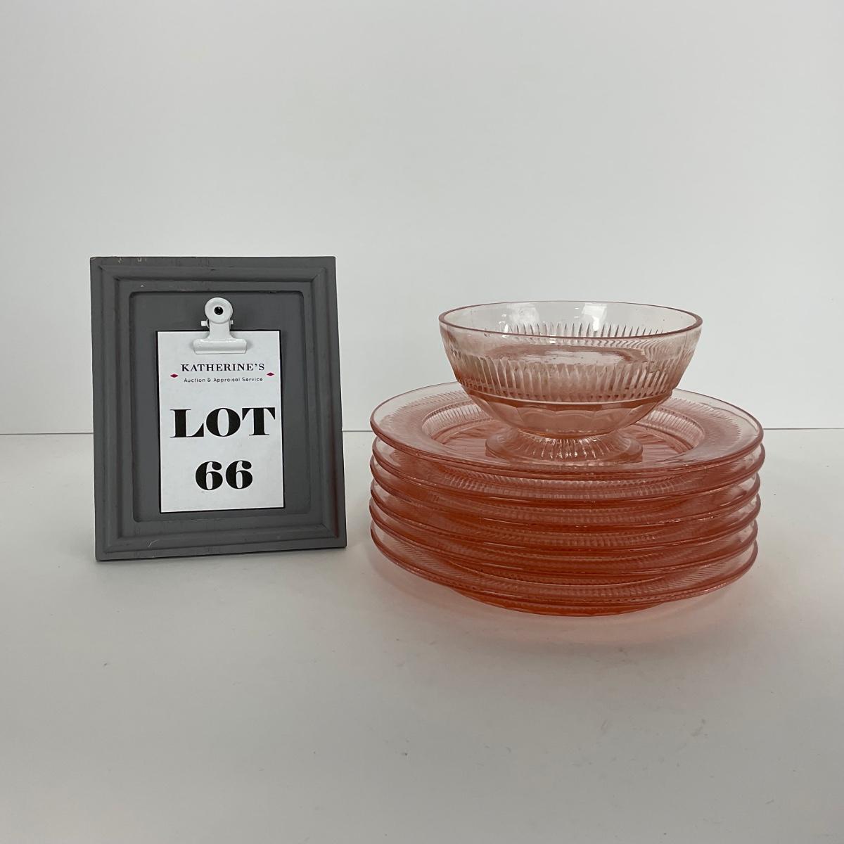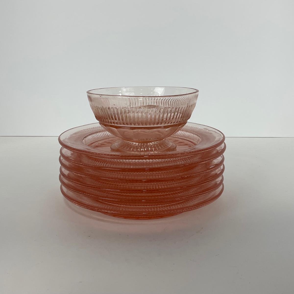 -66- GLASSWARE | Coronation Hocking Glass Co. | Pink Depression Plates & Sherbet