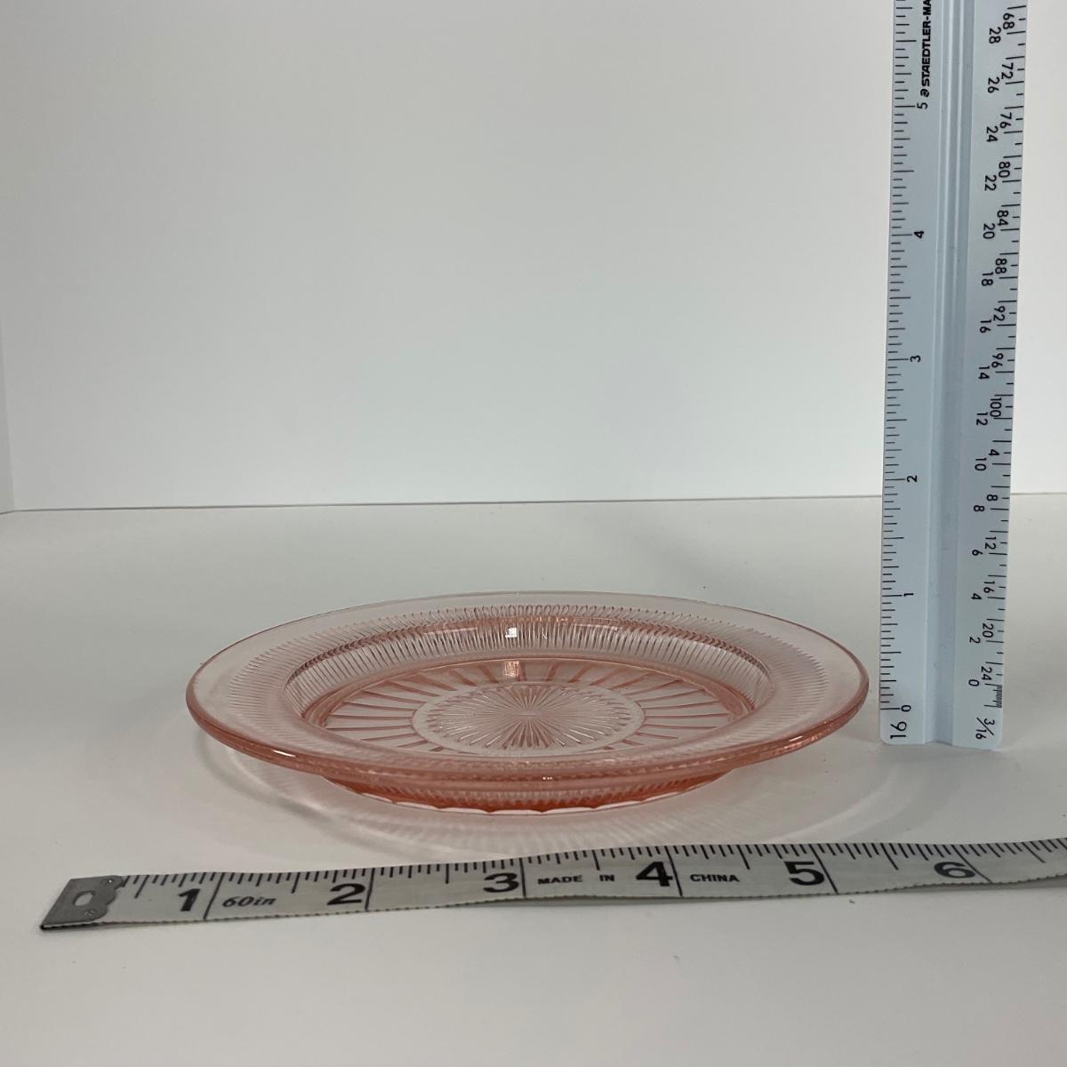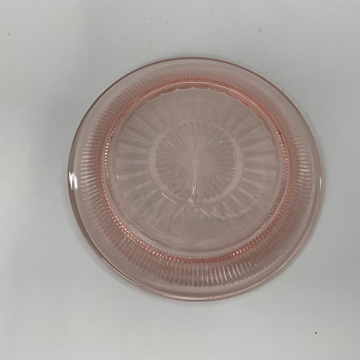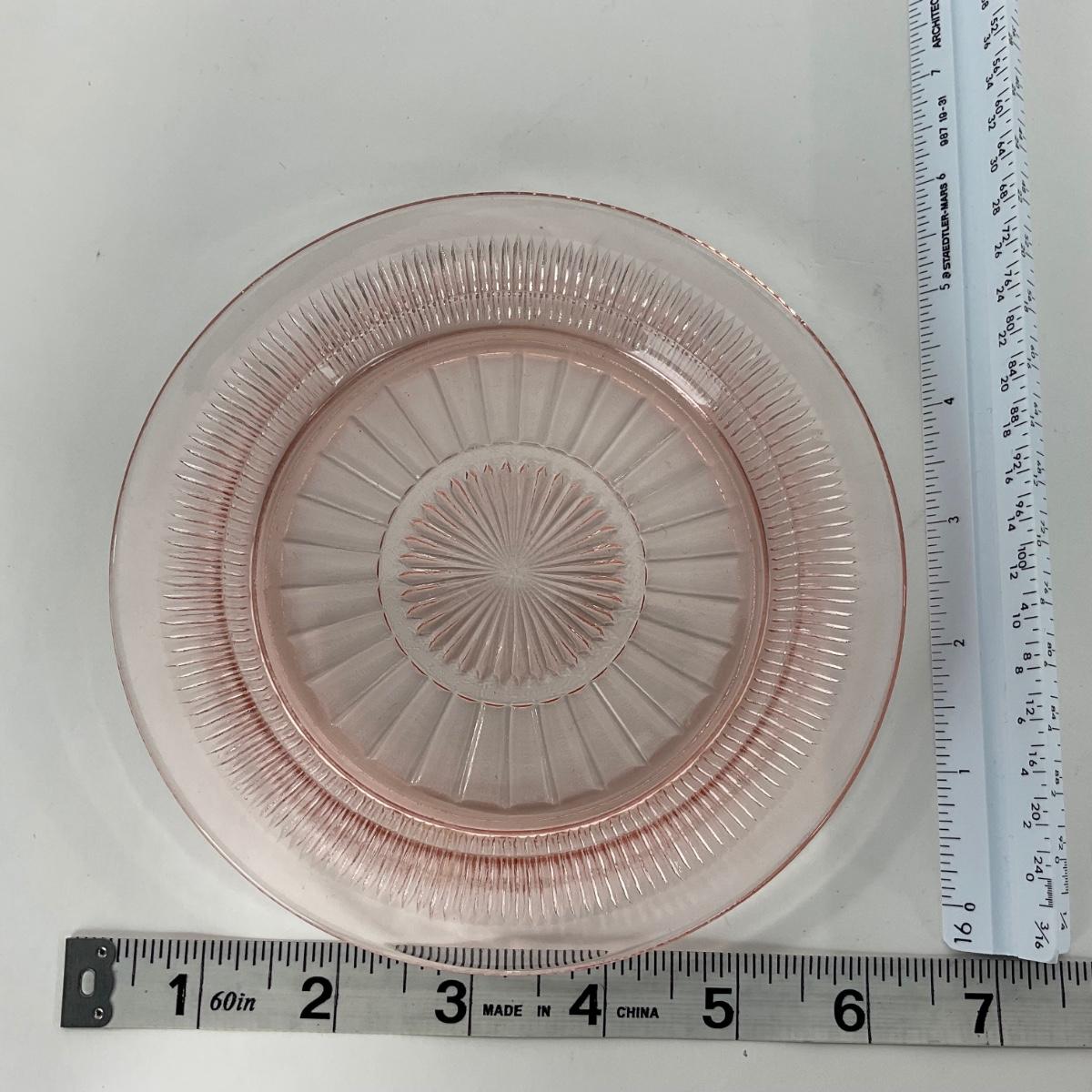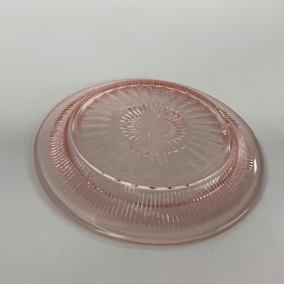 Seven pieces total of the pink depression Coronation Hocking Glass Co. (1936-1940) including six small plates, and one small sherbet, in great shape. Please see photos for details and condition. ::: Shipping is available on this lot. If you require shipping you must let us know at the close of the auction. We will coordinate with you after the item has been won. Shipping fees will include insurance up to or exceeding the value of all items being mailed. If you have any questions regarding this lot please contact the auctioneer either via this website, by direct email or by phone. PICK UP TIMES and other important information can be found in the TERMS and DESCRIPTION of the auction. Please take a look for pertinent information. Thanks!