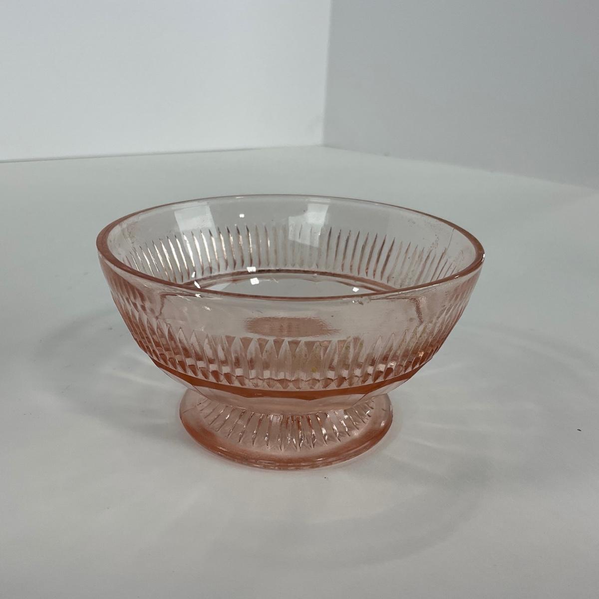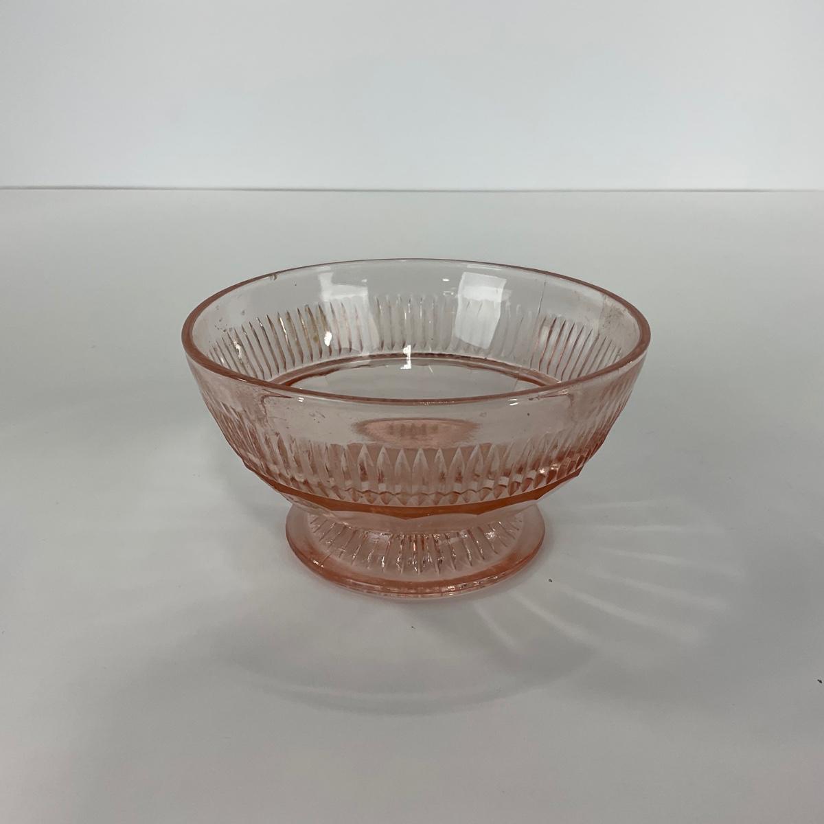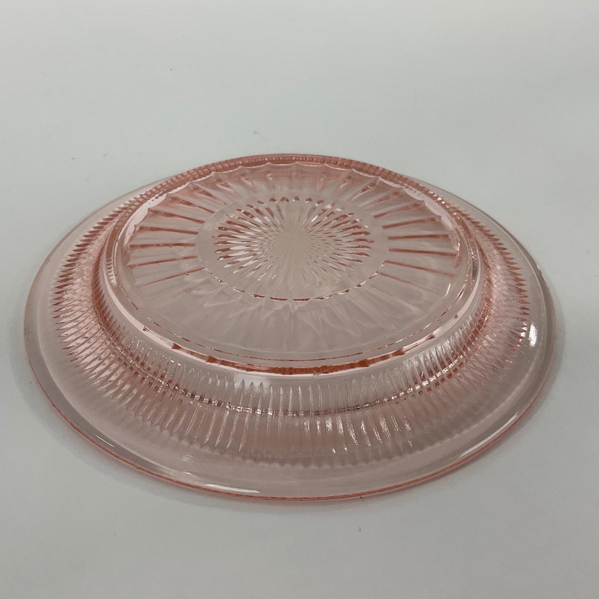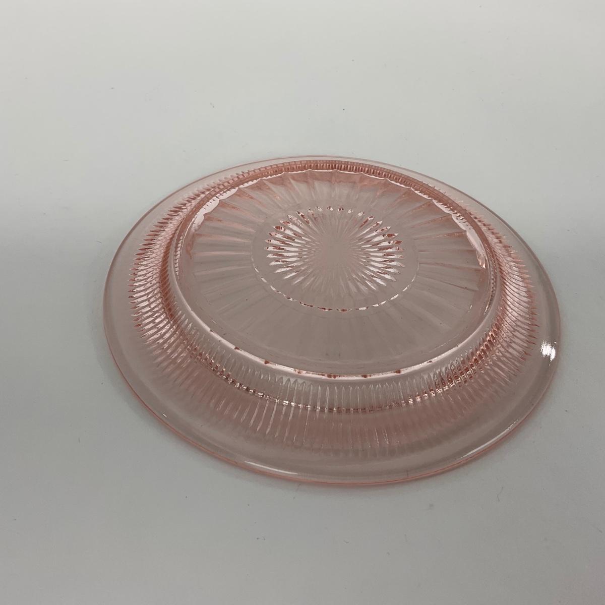Seven pieces total of the pink depression Coronation Hocking Glass Co. (1936-1940) including six small plates, and one small sherbet, in great shape. Please see photos for details and condition. ::: Shipping is available on this lot. If you require shipping you must let us know at the close of the auction. We will coordinate with you after the item has been won. Shipping fees will include insurance up to or exceeding the value of all items being mailed. If you have any questions regarding this lot please contact the auctioneer either via this website, by direct email or by phone. PICK UP TIMES and other important information can be found in the TERMS and DESCRIPTION of the auction. Please take a look for pertinent information. Thanks!
