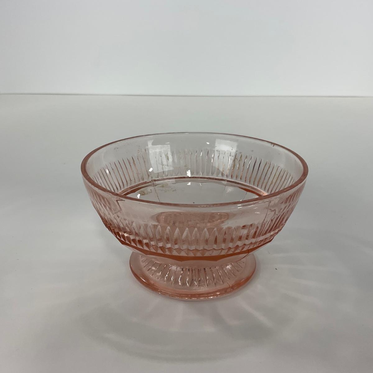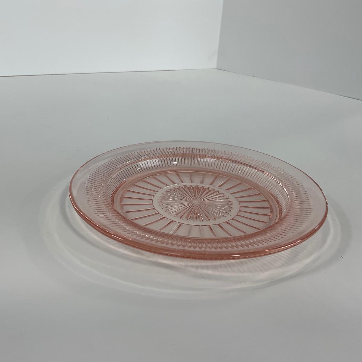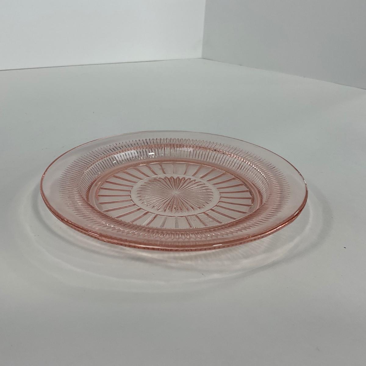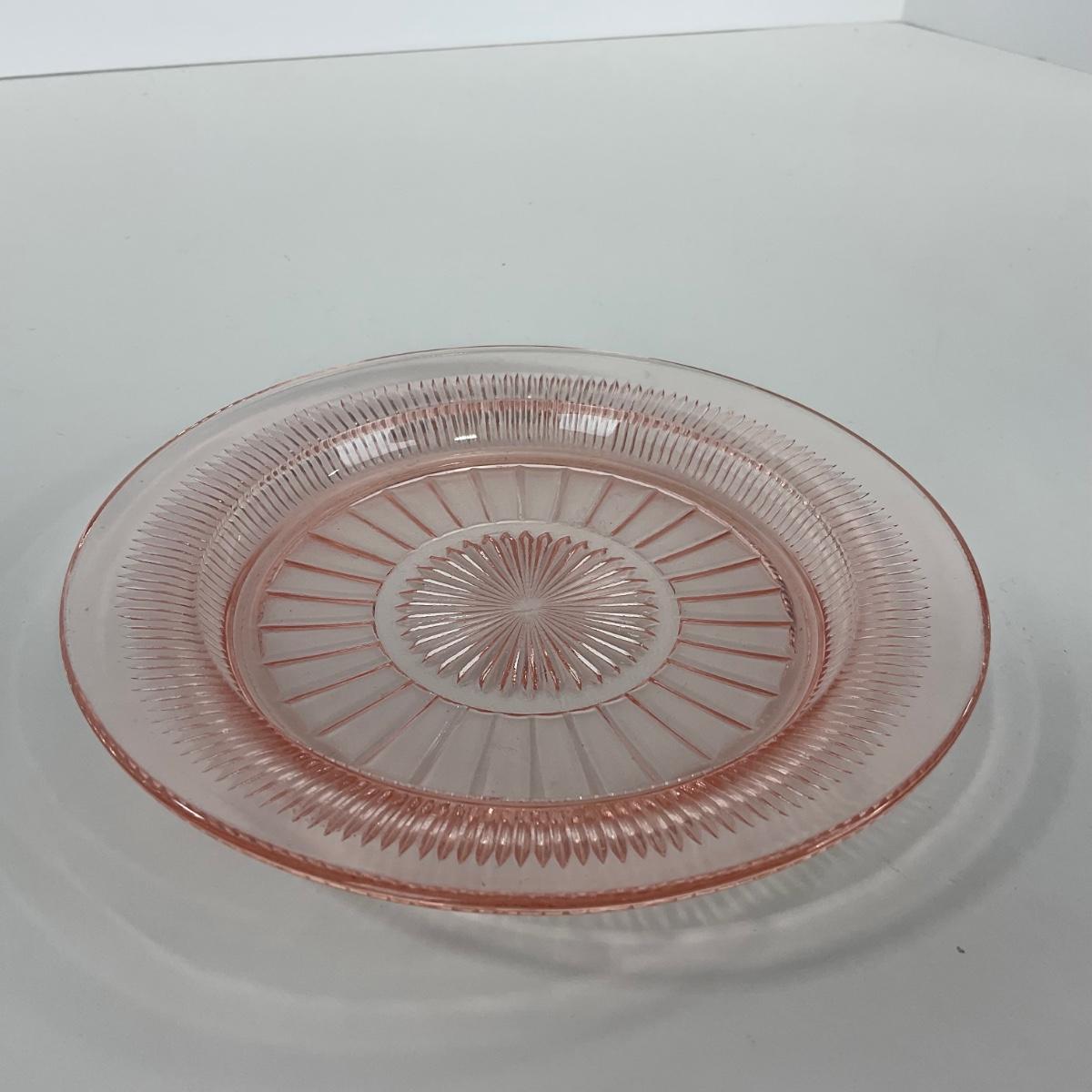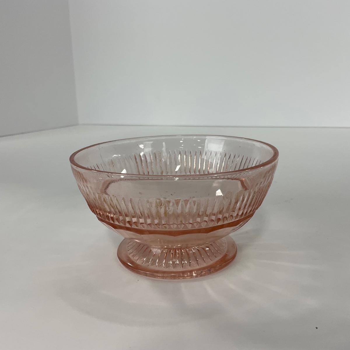 Seven pieces total of the pink depression Coronation Hocking Glass Co. (1936-1940) including six small plates, and one small sherbet, in great shape. Please see photos for details and condition. ::: Shipping is available on this lot. If you require shipping you must let us know at the close of the auction. We will coordinate with you after the item has been won. Shipping fees will include insurance up to or exceeding the value of all items being mailed. If you have any questions regarding this lot please contact the auctioneer either via this website, by direct email or by phone. PICK UP TIMES and other important information can be found in the TERMS and DESCRIPTION of the auction. Please take a look for pertinent information. Thanks!