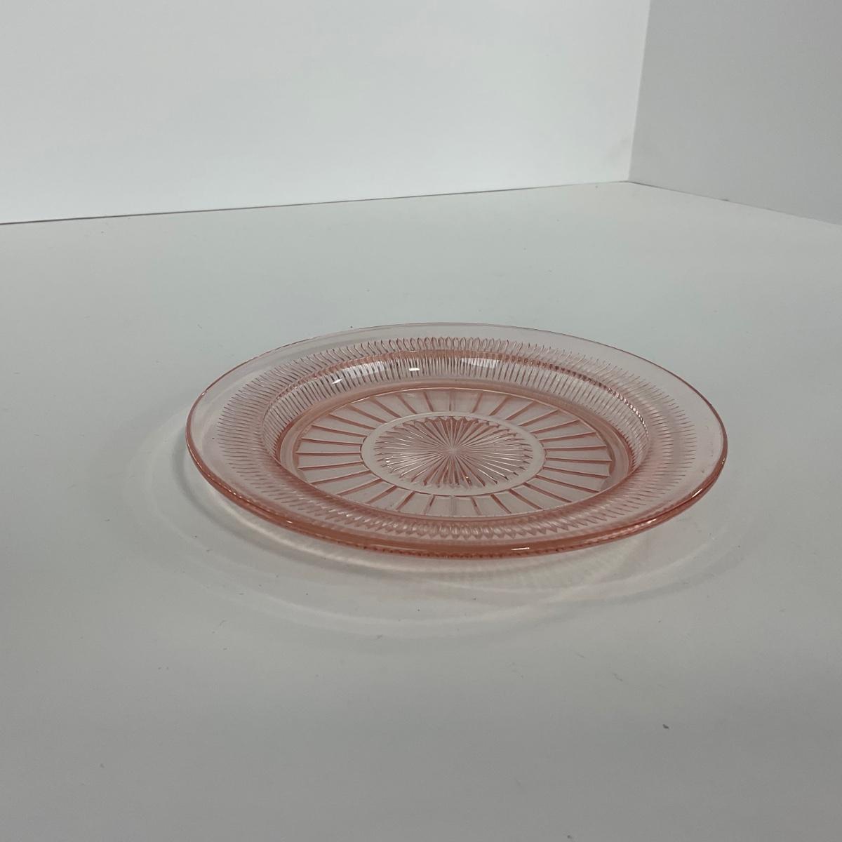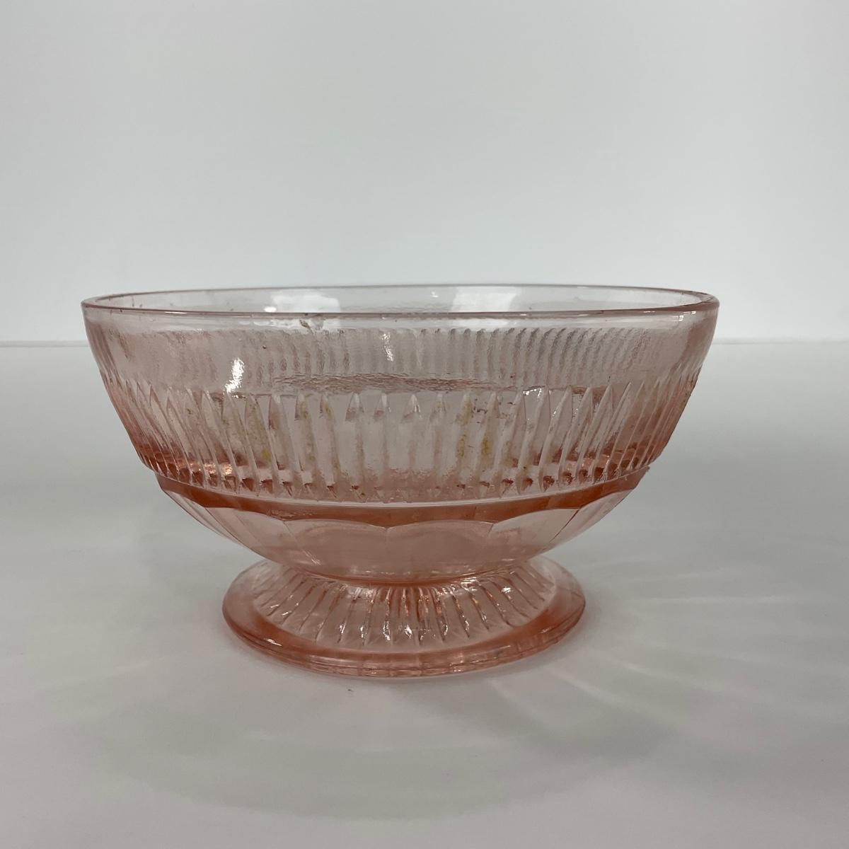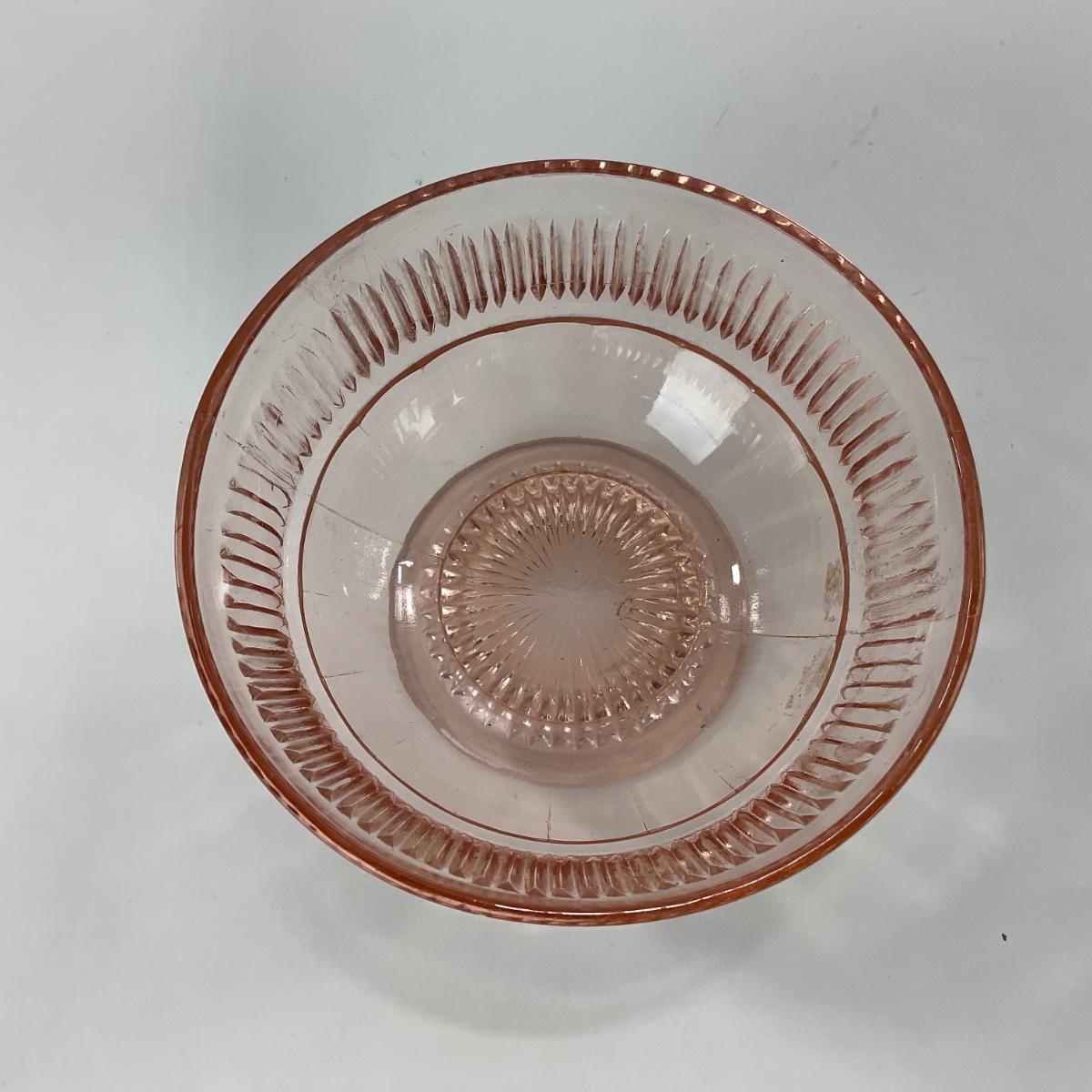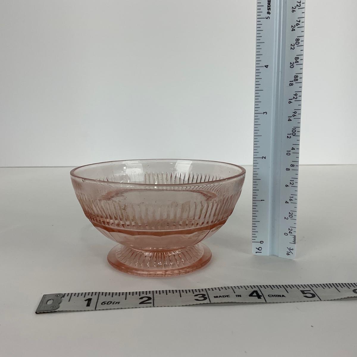 Seven pieces total of the pink depression Coronation Hocking Glass Co. (1936-1940) including six small plates, and one small sherbet, in great shape. Please see photos for details and condition. ::: Shipping is available on this lot. If you require shipping you must let us know at the close of the auction. We will coordinate with you after the item has been won. Shipping fees will include insurance up to or exceeding the value of all items being mailed. If you have any questions regarding this lot please contact the auctioneer either via this website, by direct email or by phone. PICK UP TIMES and other important information can be found in the TERMS and DESCRIPTION of the auction. Please take a look for pertinent information. Thanks!