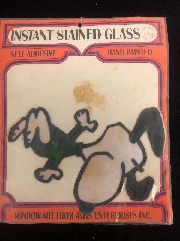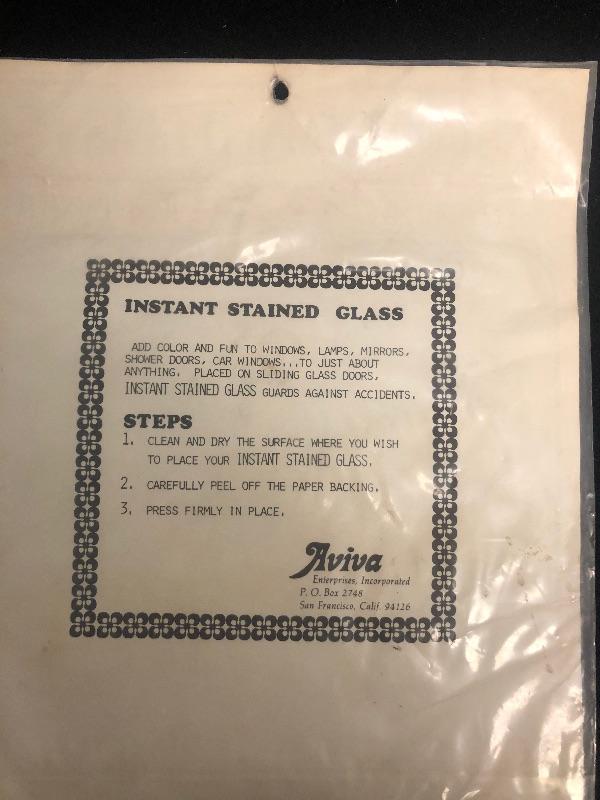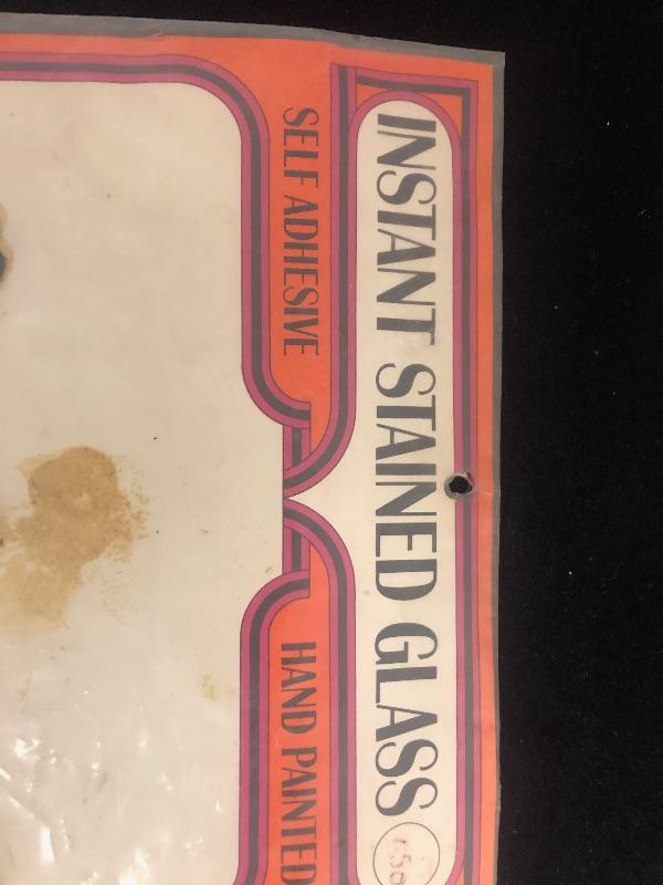 Vintage new in package Stained-glass self-adhesive - hand painted window art. Appears to have adhesive backing.
