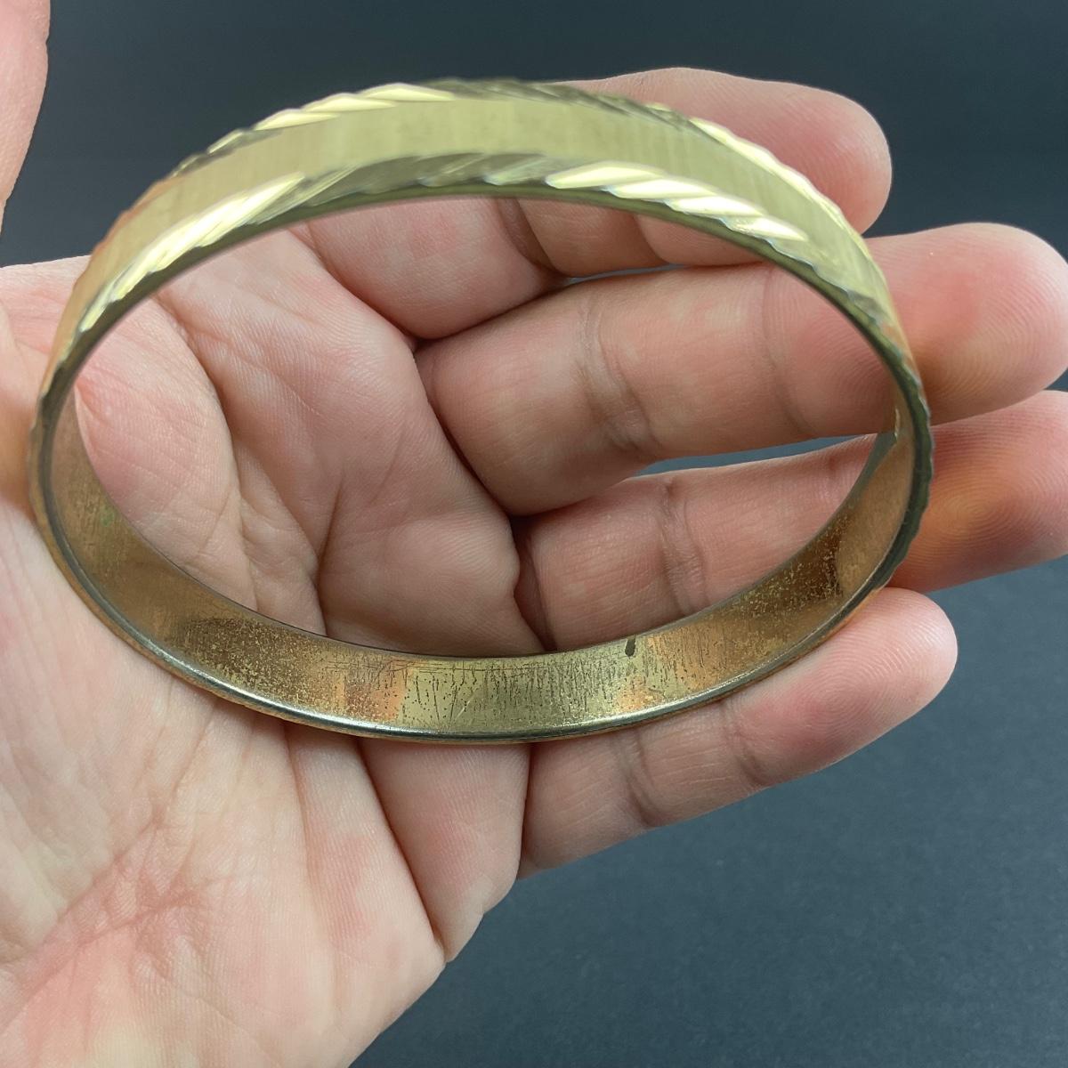 -66- MONET | Vintage Gold Tone Etched Bangle | Marked