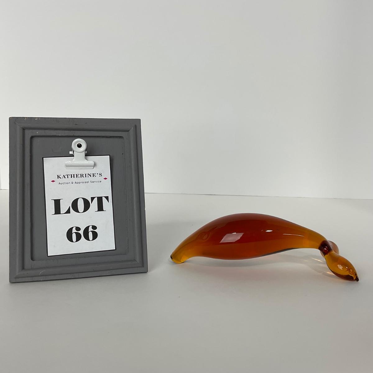 One rainbow glass co. Amber minimalist dolphin figure. 2 inches tall by 6 inches long. This piece has no damage, and appears to be in great shape with no visable chips, cracks, or broken pieces. Please see photos for details and condition. Any condition statement is given as a courtesy to a client, is an opinion, and should not be treated as a statement of fact. Reference to condition written, oral or within a condition report shall not be regarded as a full account of condition and may not include all defects, alterations, or restorations. Absence of a condition report does not imply a lot is flawless or lacking imperfections or damage. Katherine’s Auction & Appraisal Service shall have no responsibility for any error or omission. Returns shall not be accepted on the basis of condition. ::: Shipping is available on this lot. If you require shipping you must let us know at the close of the auction. We will coordinate with you after the item has been won. Shipping fees will include insurance up to or exceeding the value of all items being mailed. If you have any questions regarding this lot please contact the auctioneer either via this website, by direct email or by phone. PICK UP TIMES and other important information can be found in the TERMS and DESCRIPTION of the auction. Please take a look for pertinent information. Thanks!