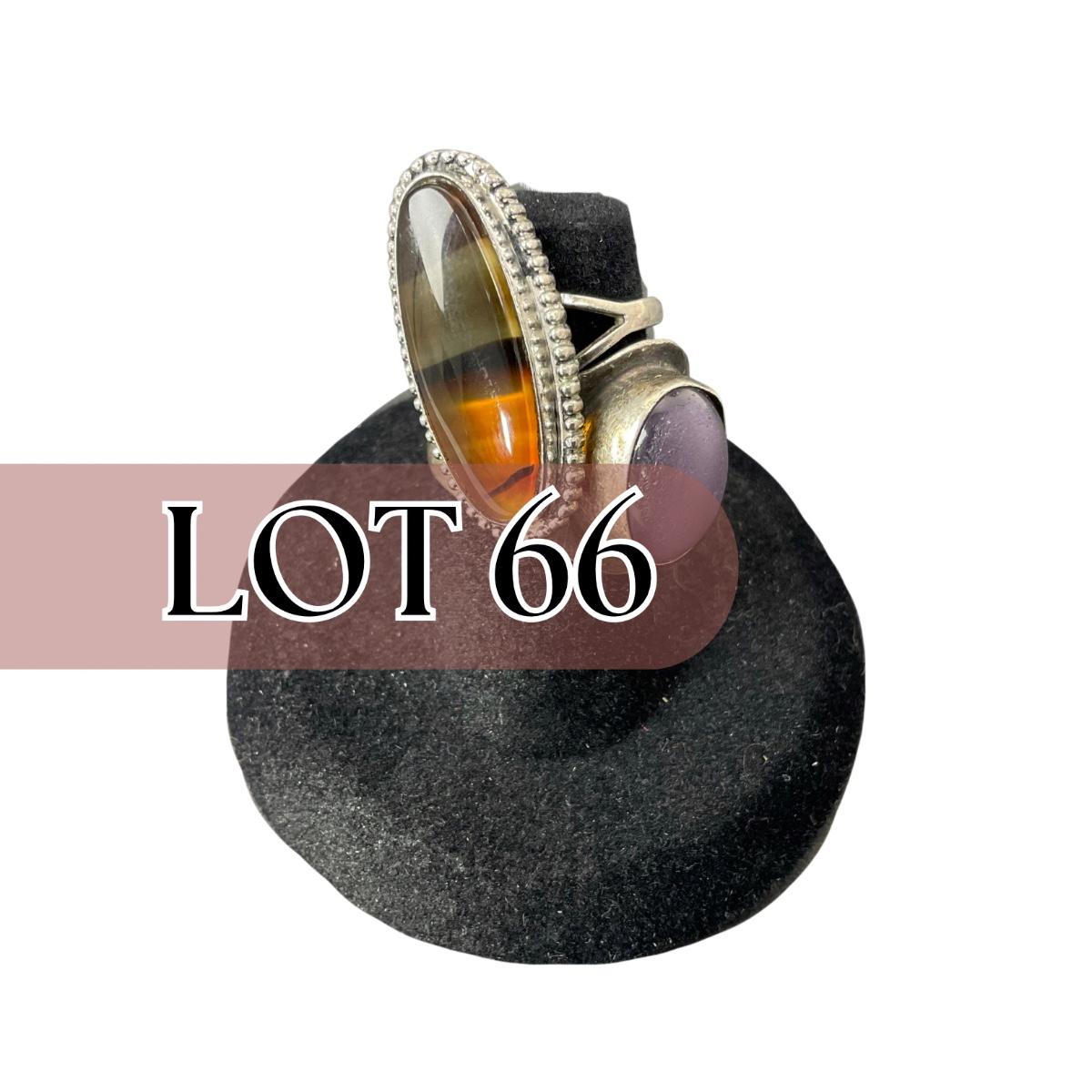 -66- SILVER | Sterling Polished Stone Rings | Marked