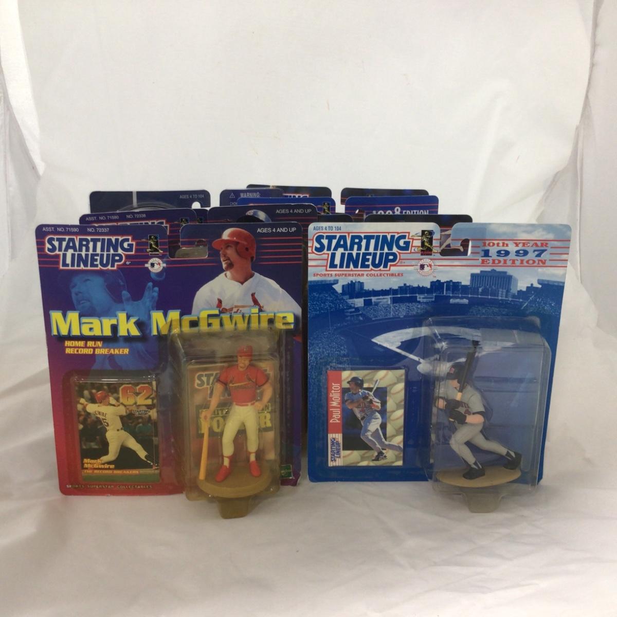 Ten baseball starting lineup figures. Please see photos for details and condition. ::: Shipping is available on this lot. If you require shipping you must let us know at the close of the auction. We will coordinate with you after the item has been won. Shipping fees will include insurance up to or exceeding the value of all items being mailed. If you have any questions regarding this lot please contact the auctioneer either via this website, by direct email or by phone. PICK UP TIMES and other important information can be found in the TERMS and DESCRIPTION of the auction. Please take a look for pertinent information. Thanks!