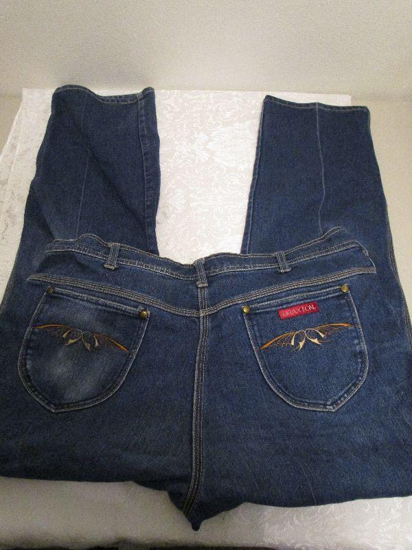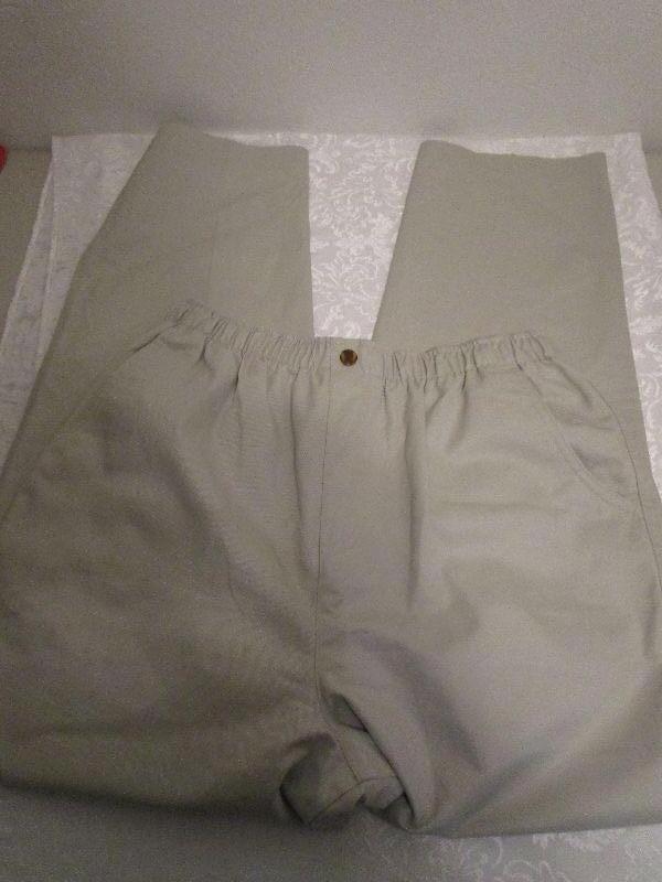 Tan twill size 14, Koret Plum crepe size 14, Braxton Jeans 38x24, Zero to Nine jeans size Large