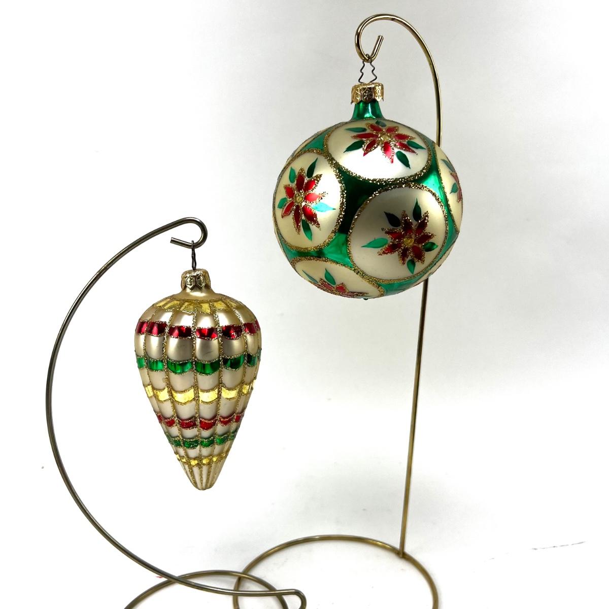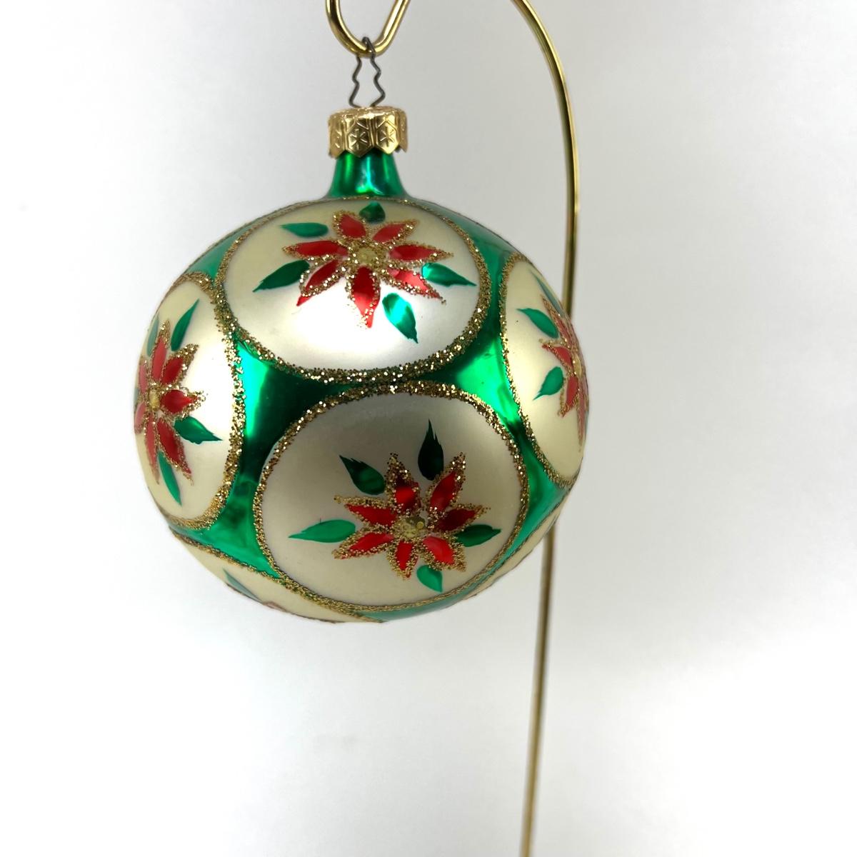 660 Large 4" Pointsettia Handpainted Glass Ball and Teardrop Ornaments