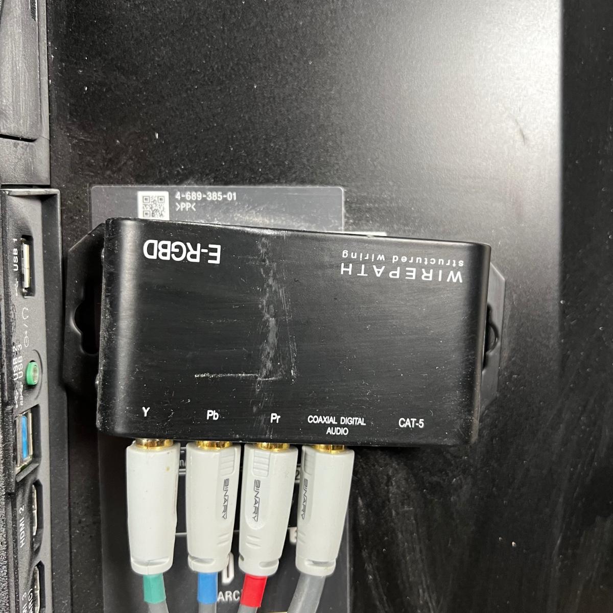 Includes power cord, wall mount with stud screws and E-RGBD wire path structured wiring block.