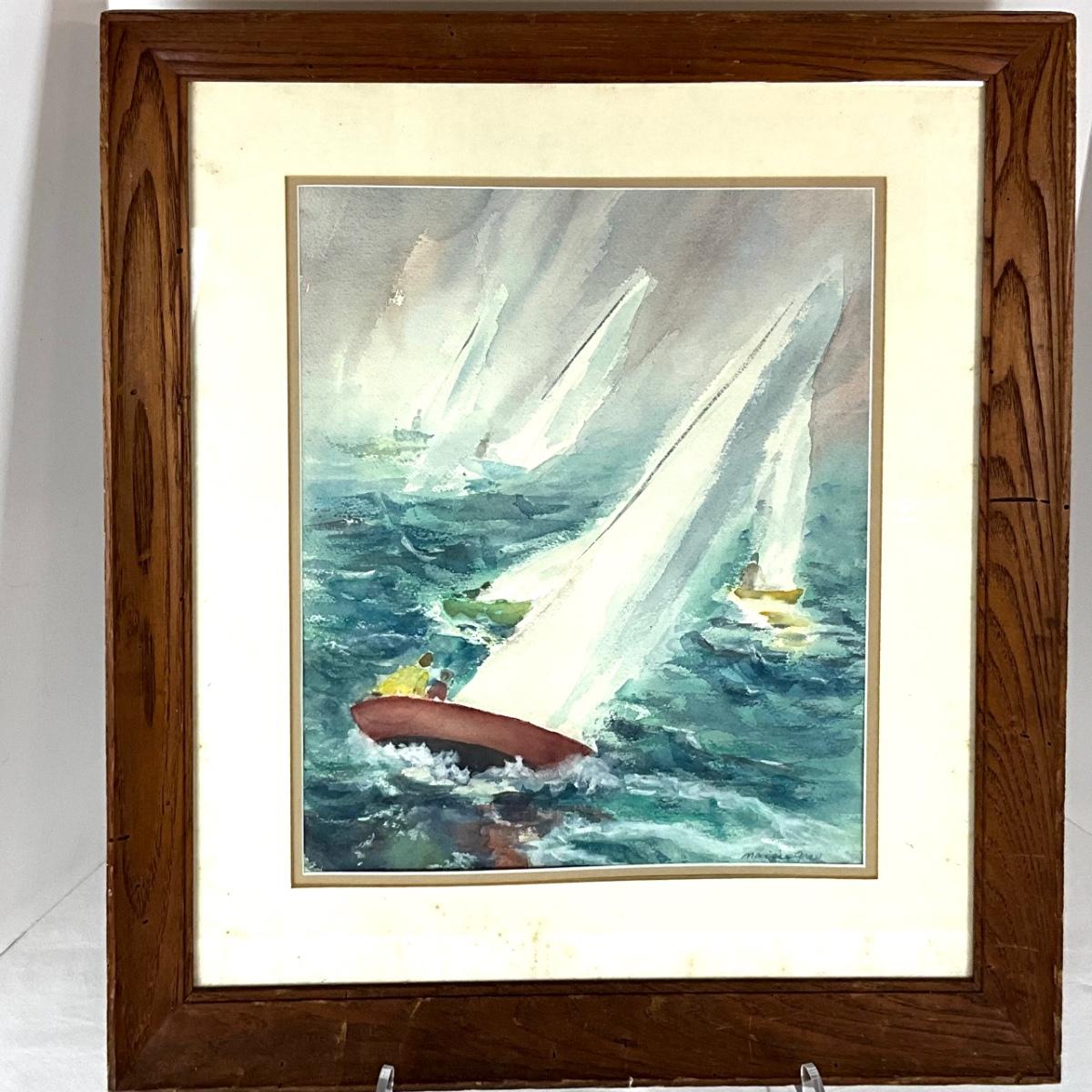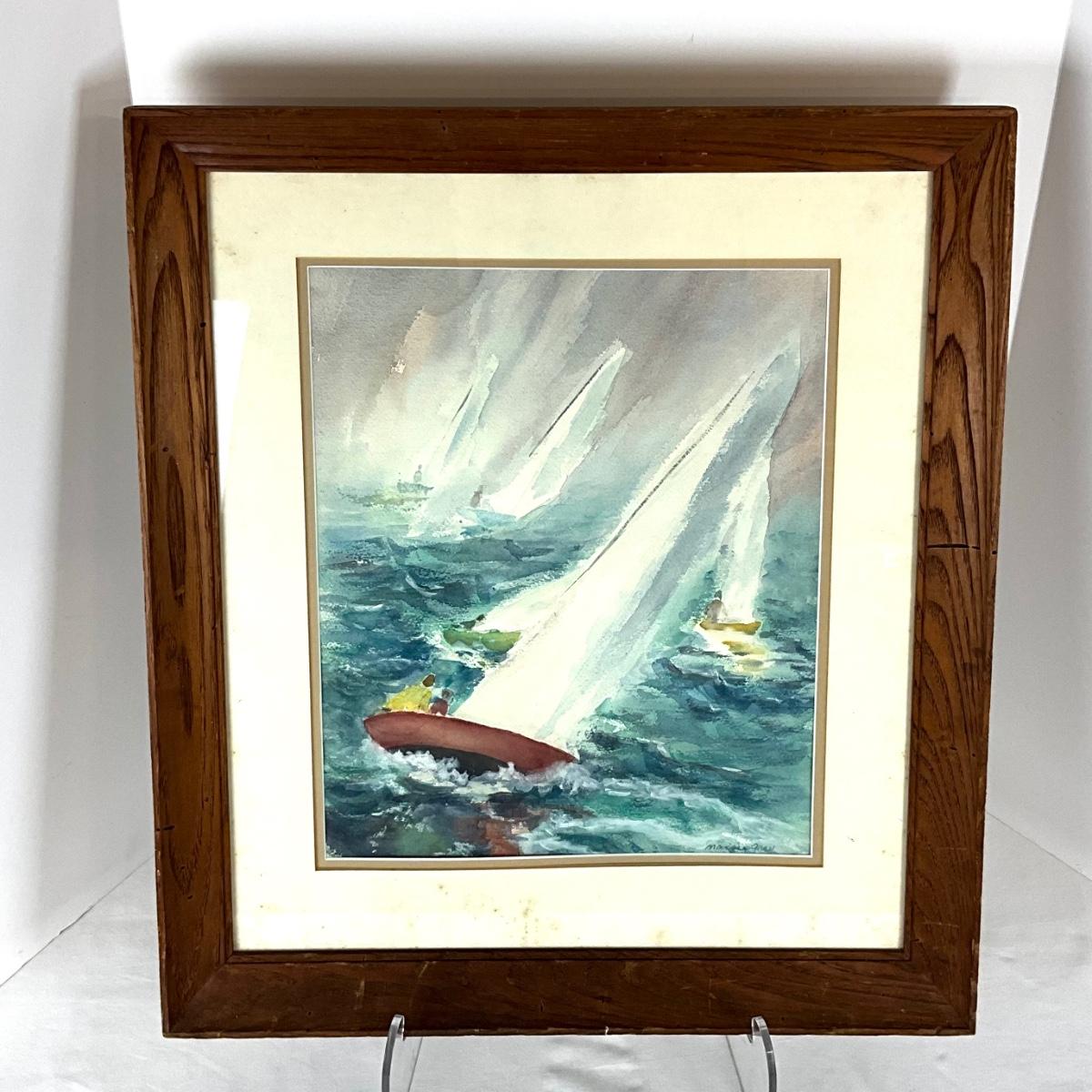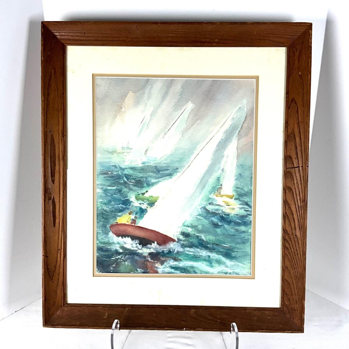 665 Vintage Sailboat Watercolor by Marcie Gray in Chestnut Frame