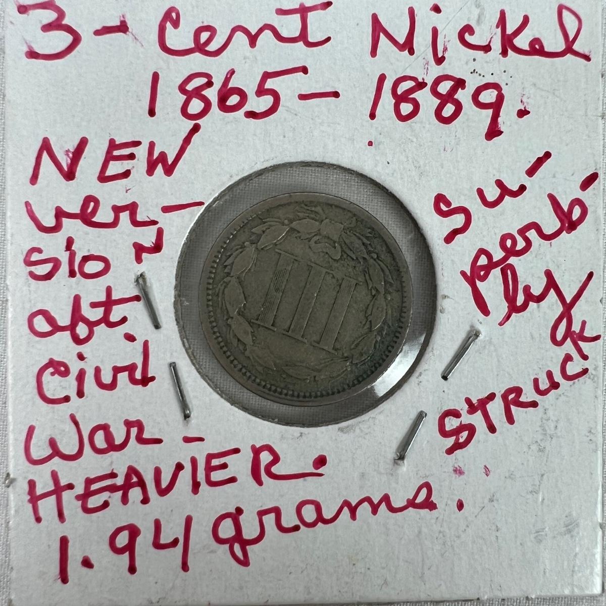 Rare 1867 3-Cent Nickel Superbly Struck 1.95 Grams