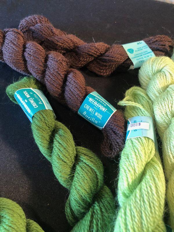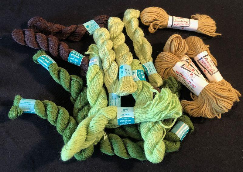 #667 CREWEL Mixed lot Greens, yellow and Brown