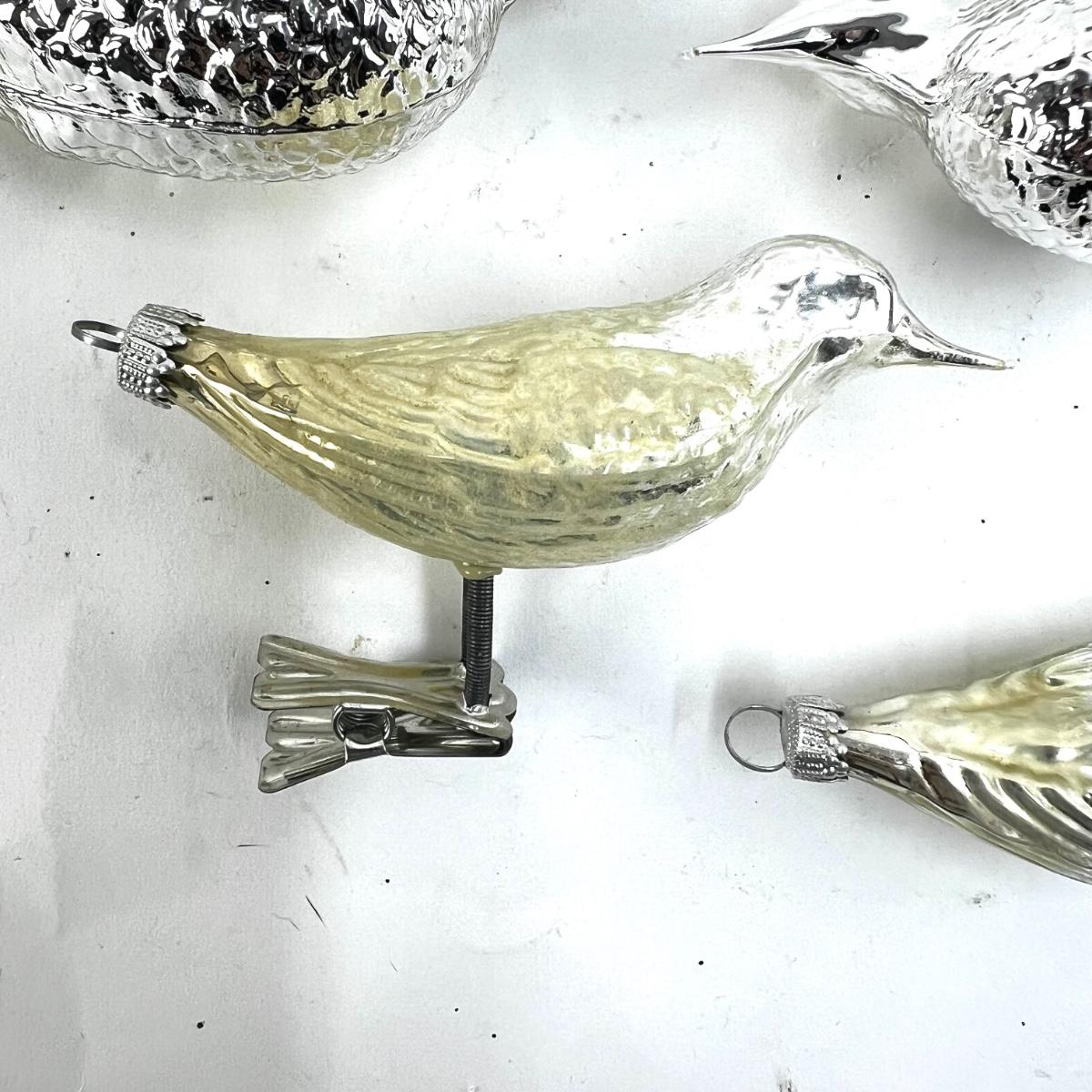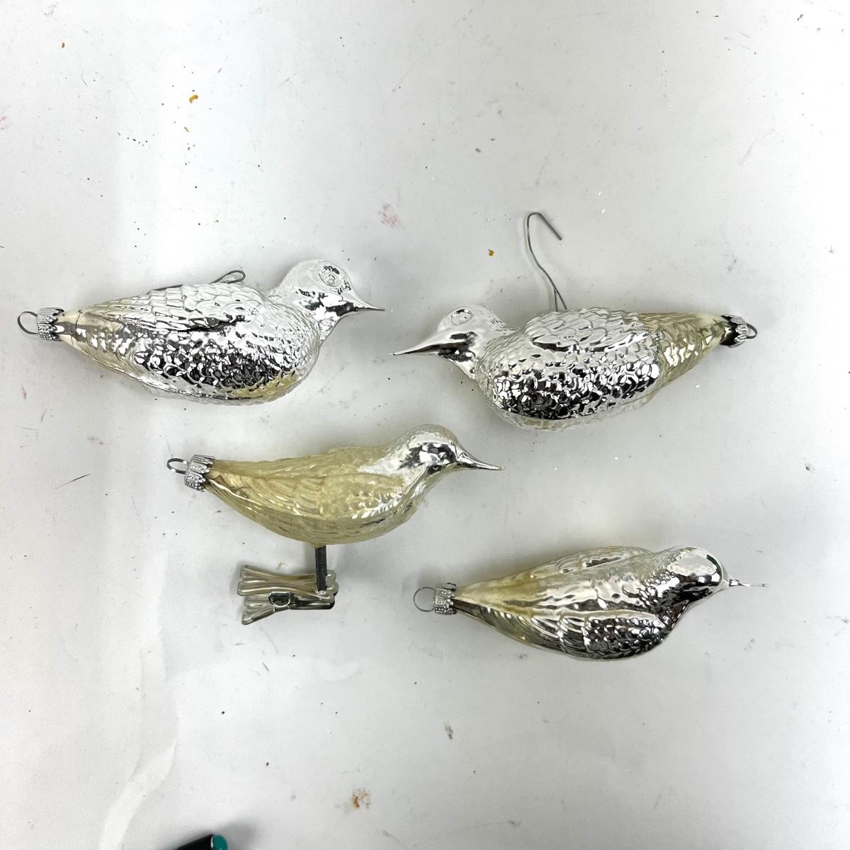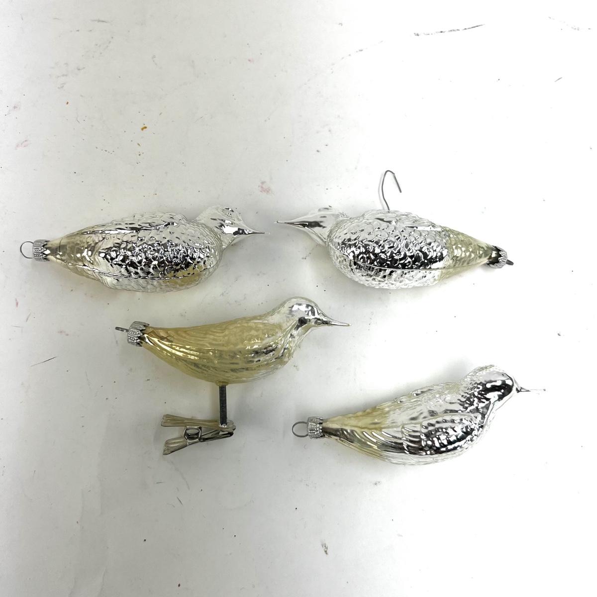 668 Set of 4 Mercury Glass Bird Ornaments/Clip
