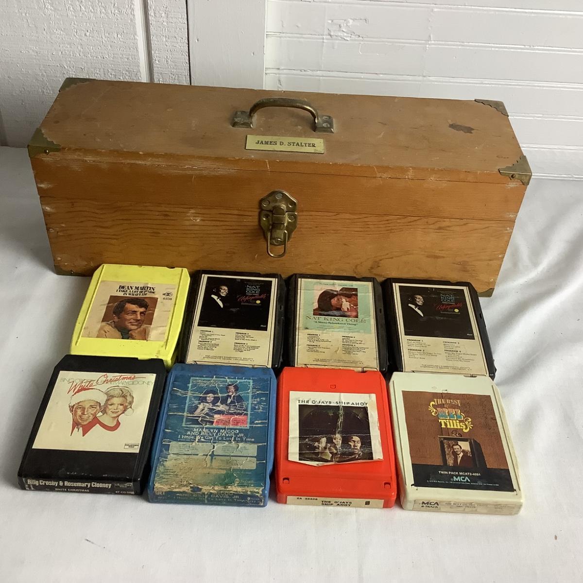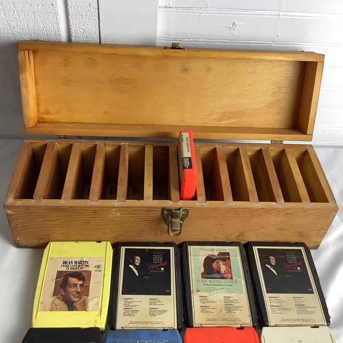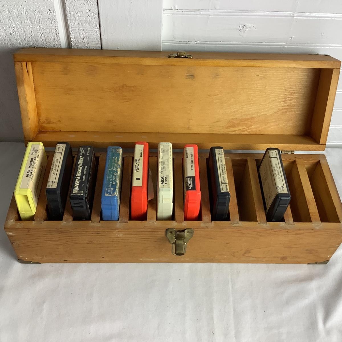 U668 Vintage Hand Crafted Wooden Box & 8 Track Tapes